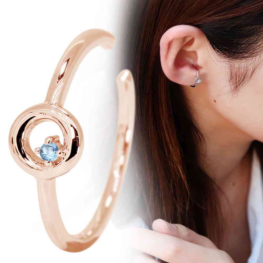 11月誕生石ブルートパーズを使用した10金製の、幾何学デザイン(丸)のイヤーカフです。
