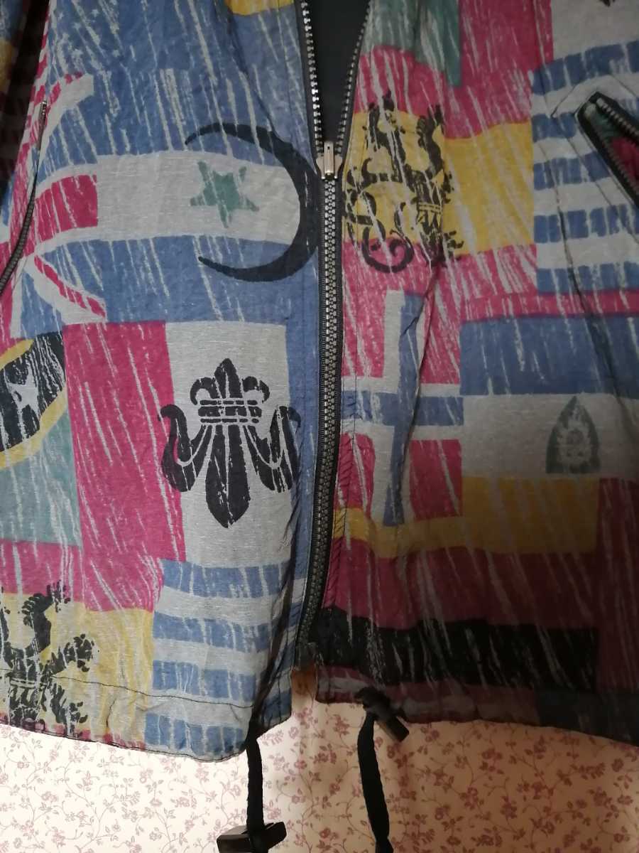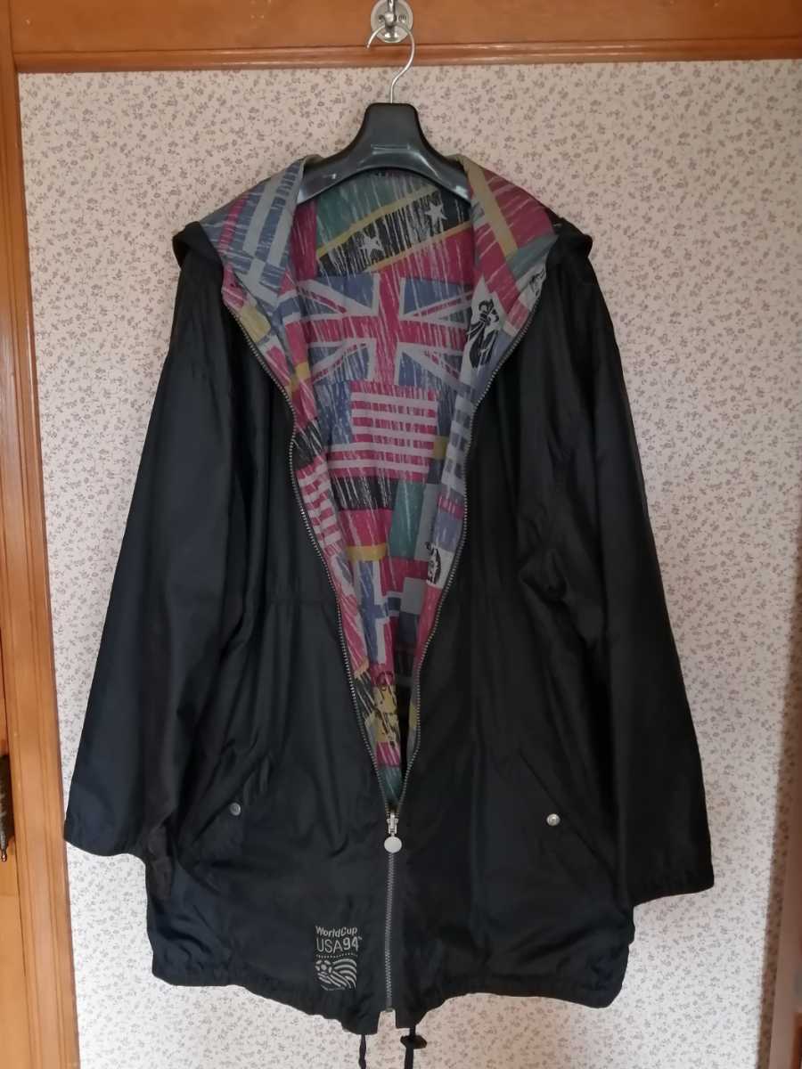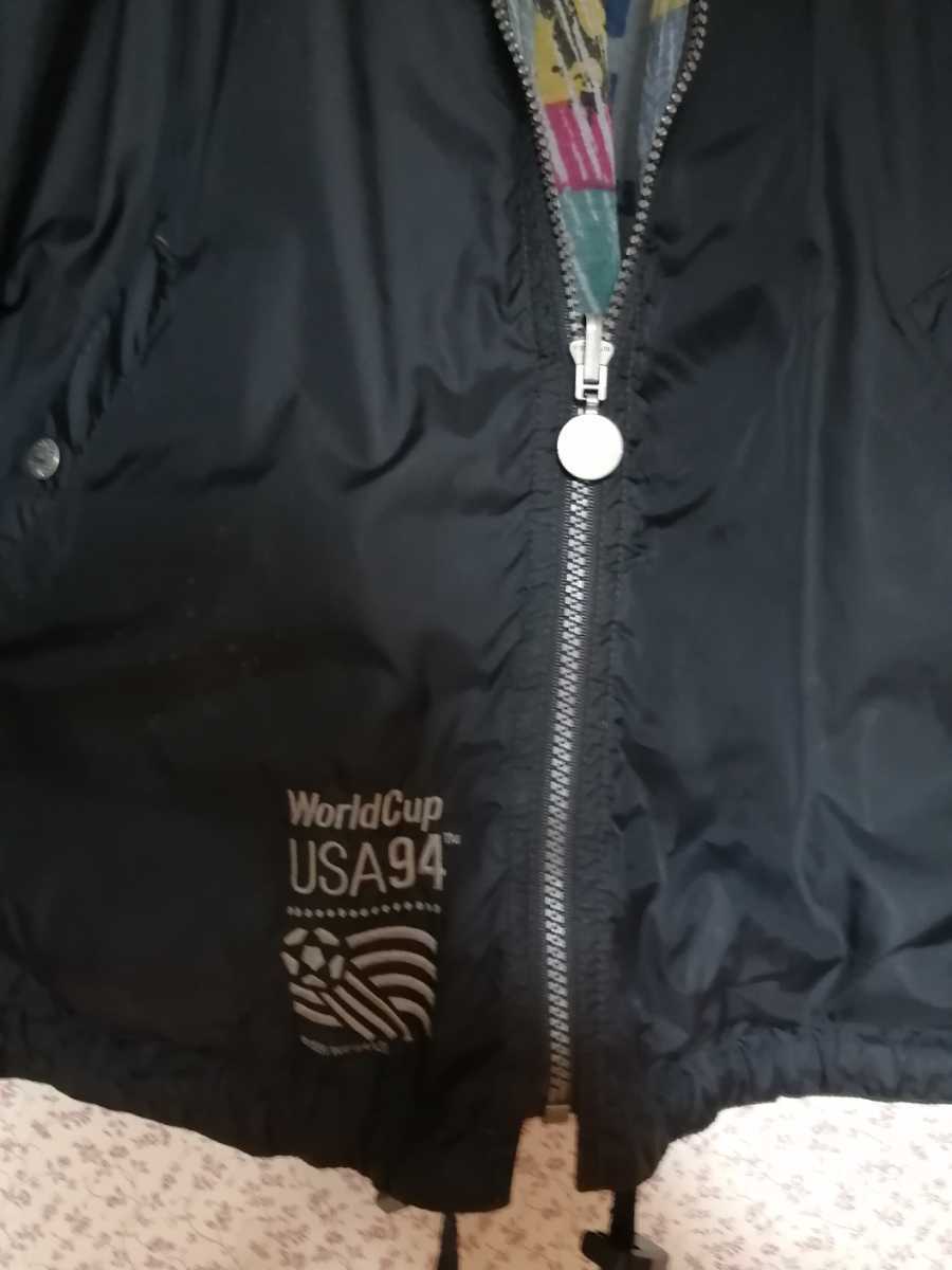 1994年FIFA ワールドカップ記念、アディダス製のスタジアムコートです。リバーシブル仕様で表は黒、裏はカラフルな参加国の国旗をデザインした模様です。30年近く経っていますが、デザインは新鮮です。決勝はブラジルとイタリアで、ロスアンジェルス郊外パサディナのローズボールで行われました。PK 戦の末3-2でブラジルの勝利に終わりました。