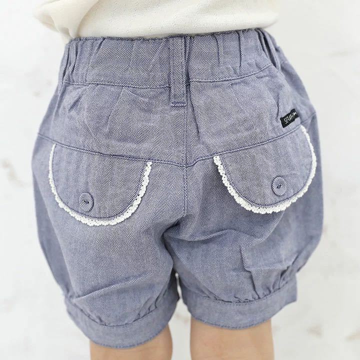 キッズ 子供 ベビー ズボン パンツ ショートパンツ ネイビー 青 ガール 女の子 レース 80 ベビー服