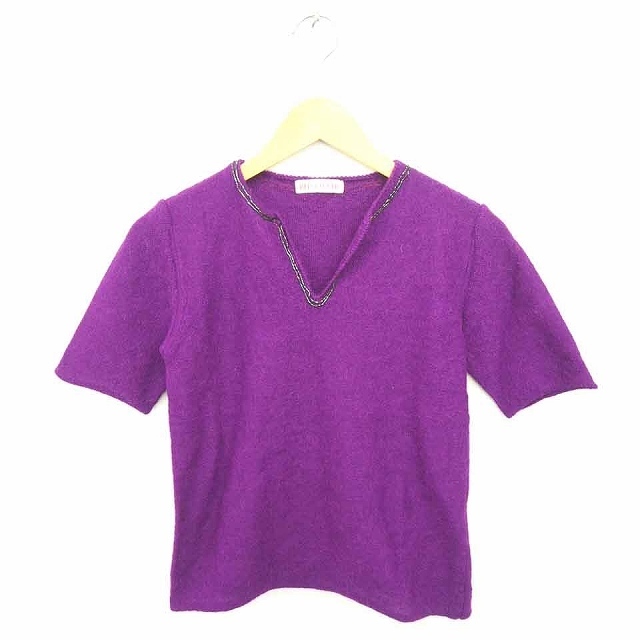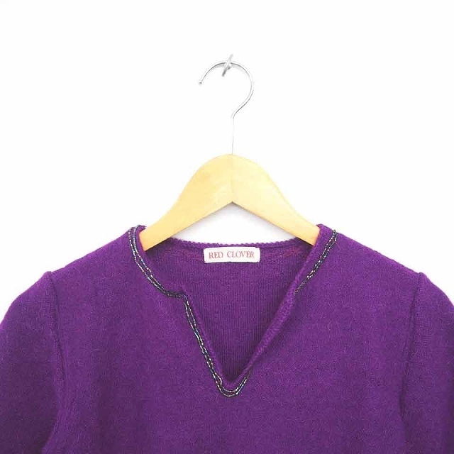レッドクローバー red clover ニット セーター キーネック ビーズ装飾 アルパカ 半袖 紫 パープル /TT39 レディース