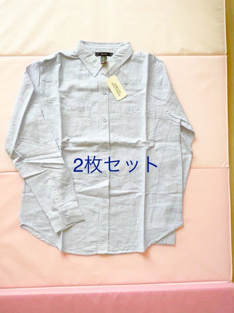 forever21 フォーエバー21 リネンコットンシャツ サイズS ブルー ストライプ 長袖シャツ
