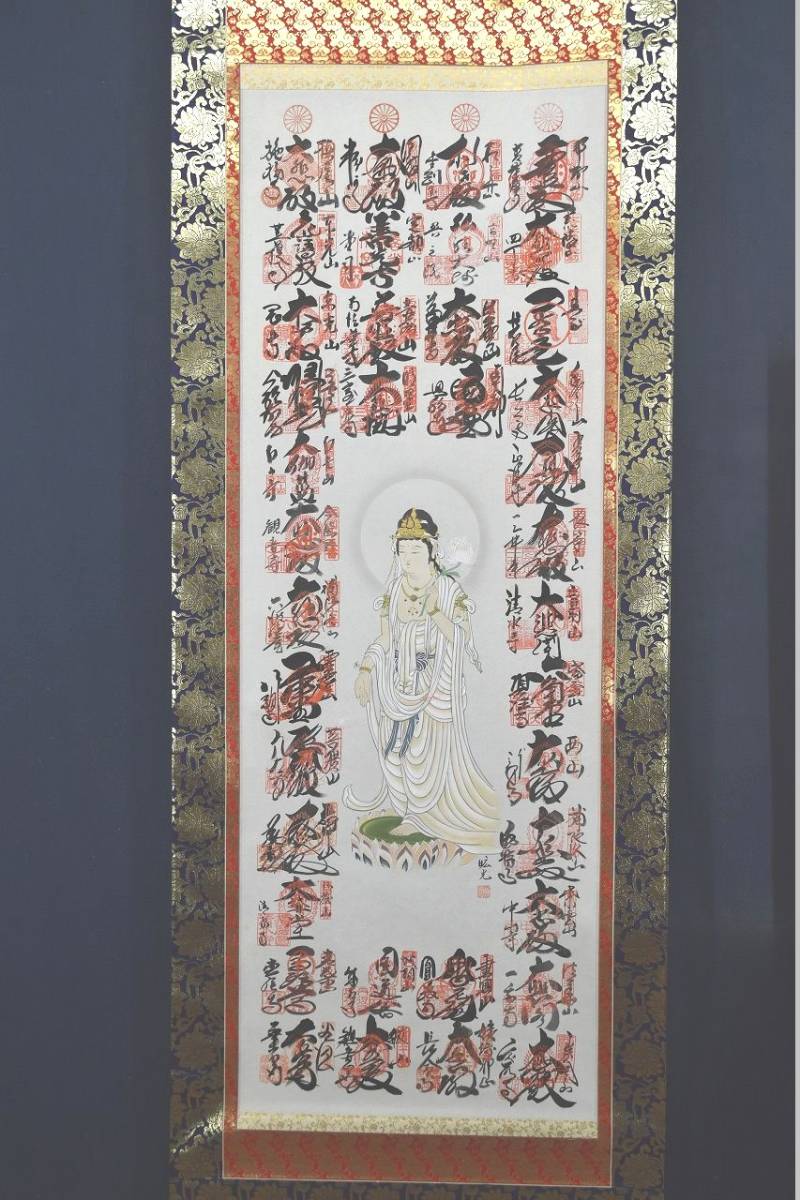 西国 三十三ヶ所/西国三十三箇所霊場集印肉筆掛軸//掛軸☆宝船☆AA-375