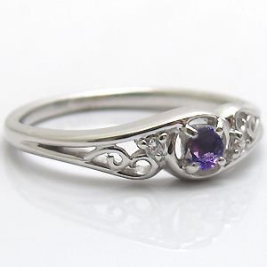2月誕生石アメジストを一粒使用したアンティークデザインのプラチナ製リングです。