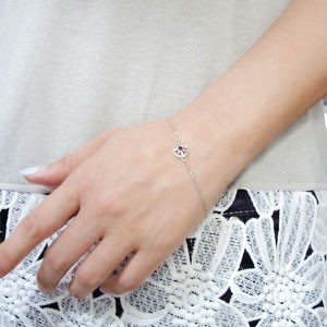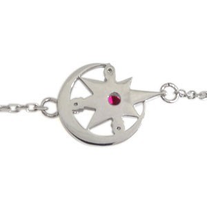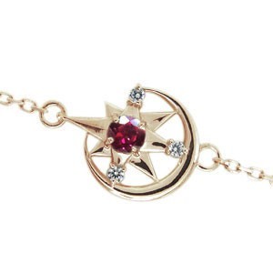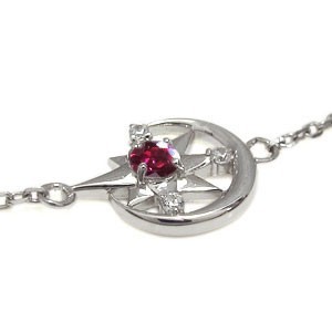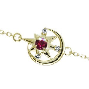 7月誕生石ルビーを使用した18金製の三日月(ムーン)と星(スター)モチーフブレスレットです。