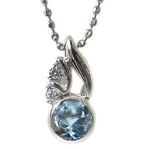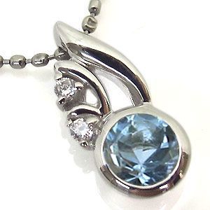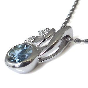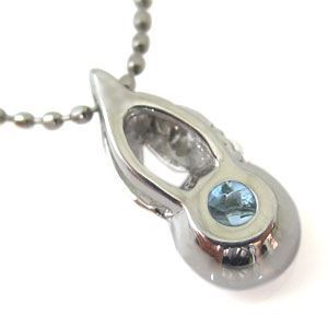 3月誕生石アクアマリンサンタマリアを一粒使用したシンプルデザインのプラチナ製ネックレスペンダントです。