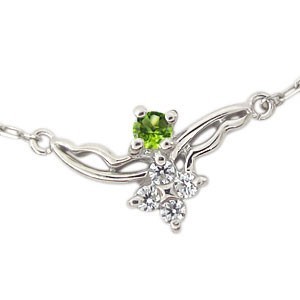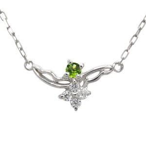 8月誕生石ペリドットを使用した、天使の羽根(フェザー)をモチーフにしたプラチナ製ネックレスペンダントです。