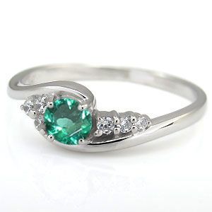 ■石名:主石 エメラルド(約 4.0mm/天然石使用)脇石 ダイヤモンド(6石合計で約 0.09ct/天然石使用)