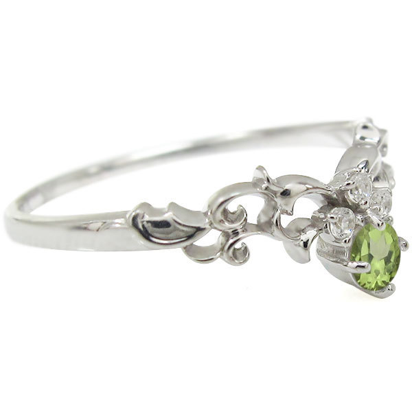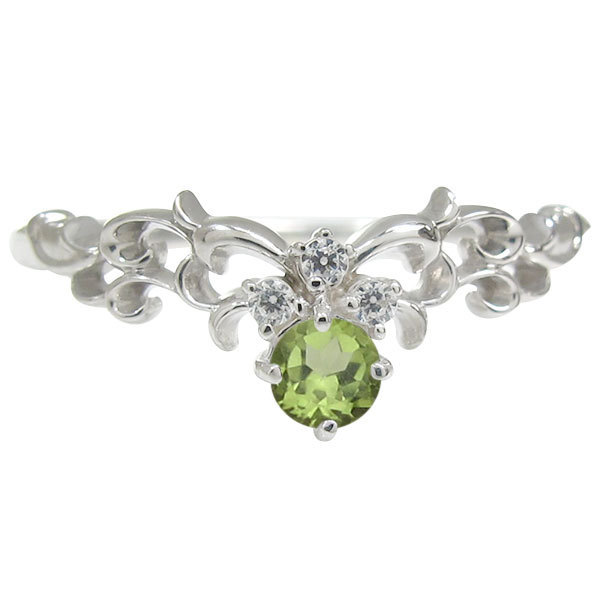 8月誕生石ペリドットを一粒使用した10金製のティアラ&唐草モチーフリング(指輪)です。