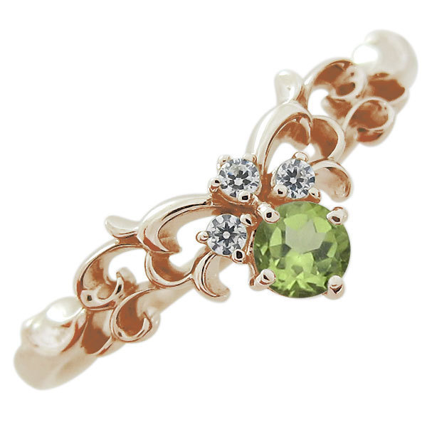 ■石名:主石 ペリドット(約 3.0mm/天然石使用)脇石 ダイヤモンド(3石合計で約 0.03ct/天然石使用)