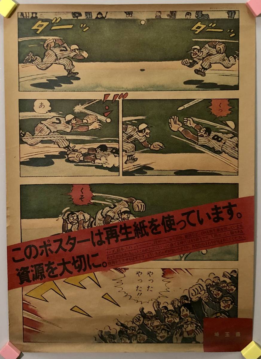 「このポスターは再生紙を使っています。資源を大切に。」ポスター(埼玉県/昭和40年代?/プレイボール/レトロ/JUNK)