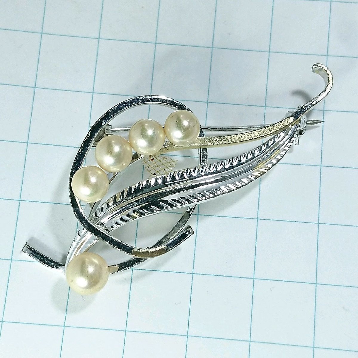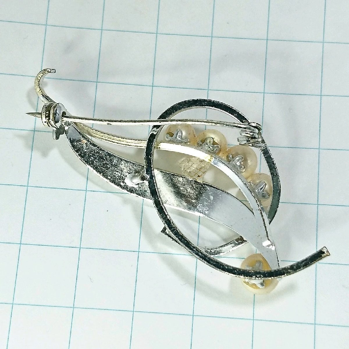 送料無料)ビンテージ☆パール フェイク ウェーブ☆アンティークブローチ A12315