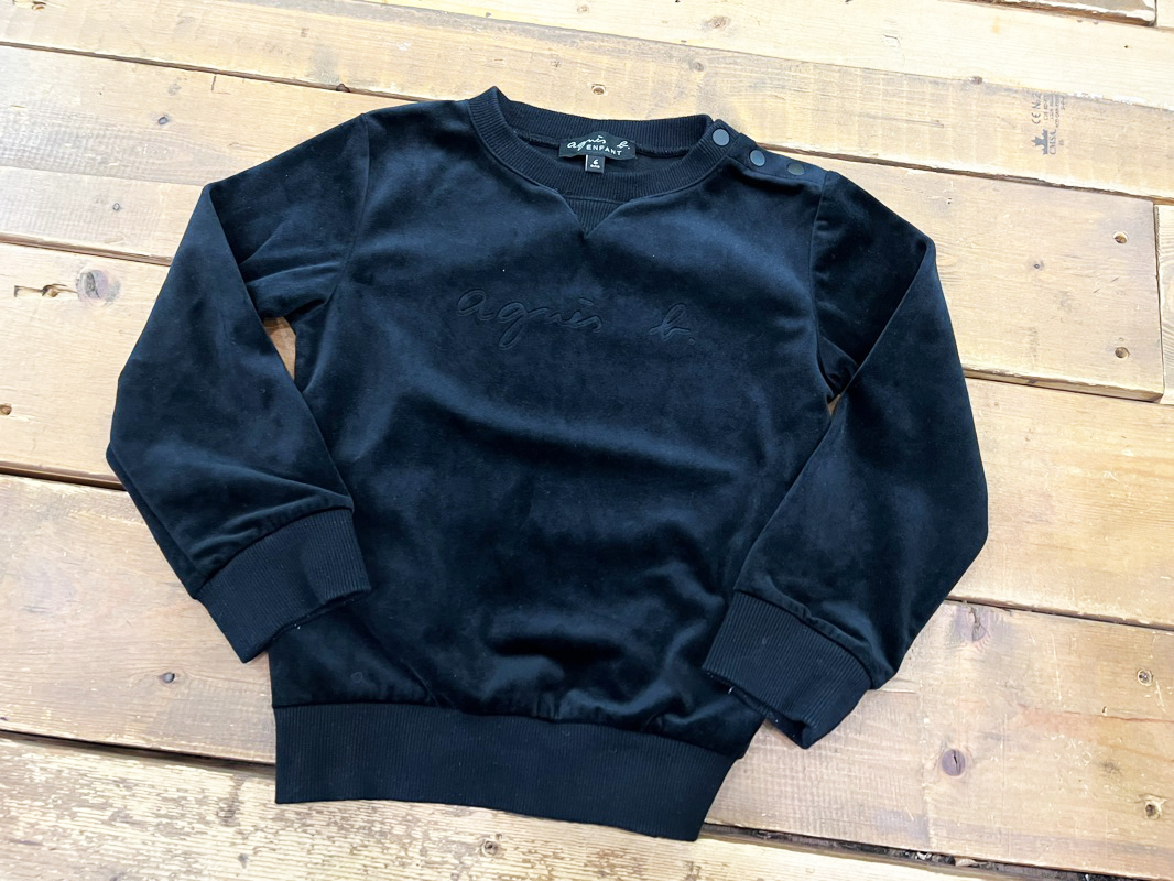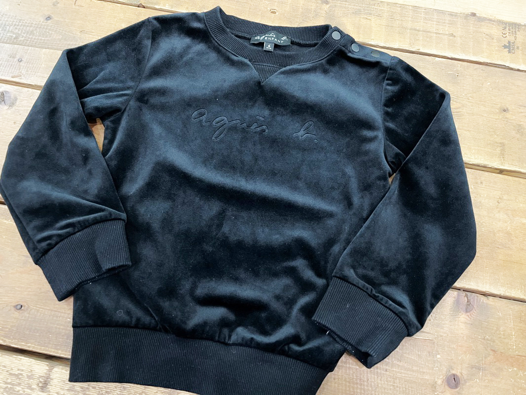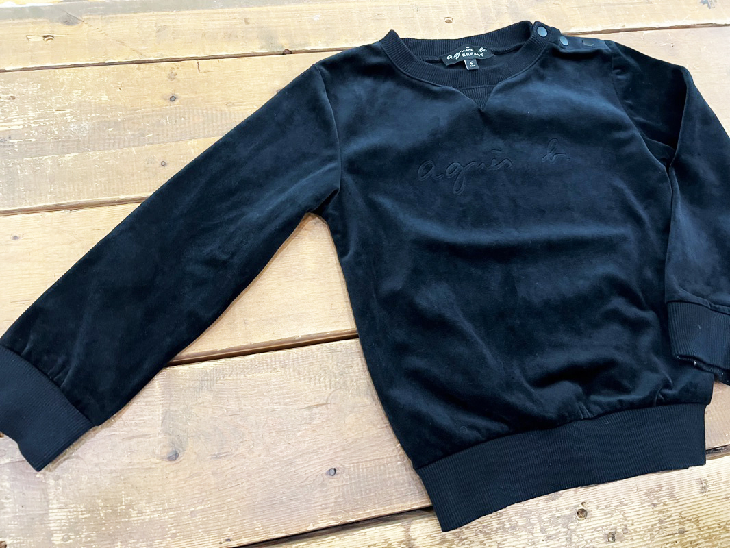 R83★agnesb. ENFANT/アニエスベーアンファン ロゴデザインベロアトップス ブラック 子供服 女の子用 サイズ6ans USED 良品 ★