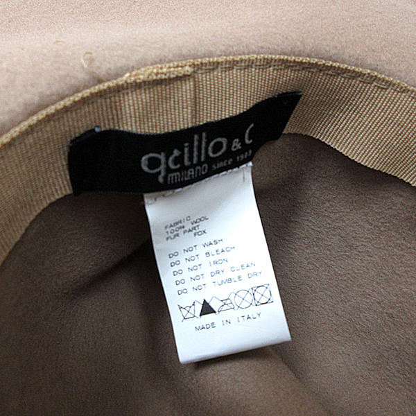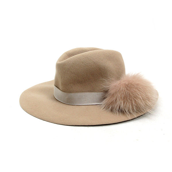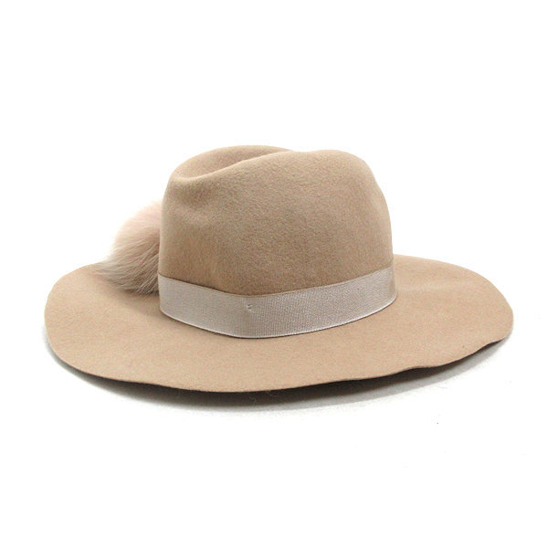 k■ITALY製■クッチロアンドシー/qcillo&c リアルファー付き ウールハット/キャペリンハット/帽子/ベージュ/LADIES■170 【中古】