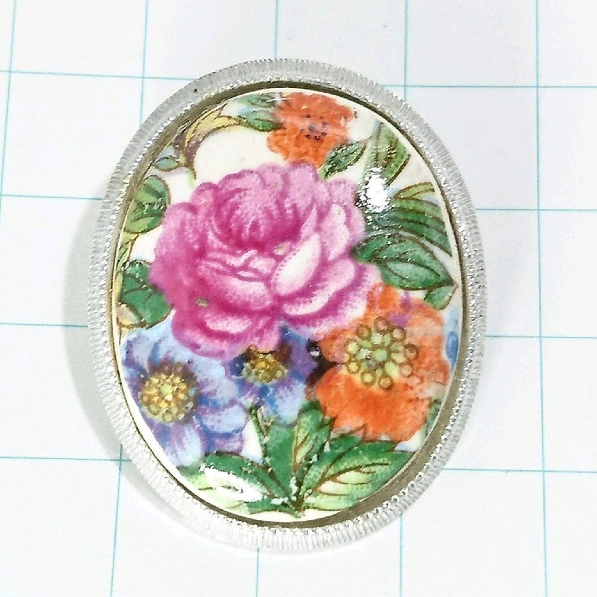 送料無料)ビンテージ☆陶器 お花モチーフ☆アティークブローチ A13421