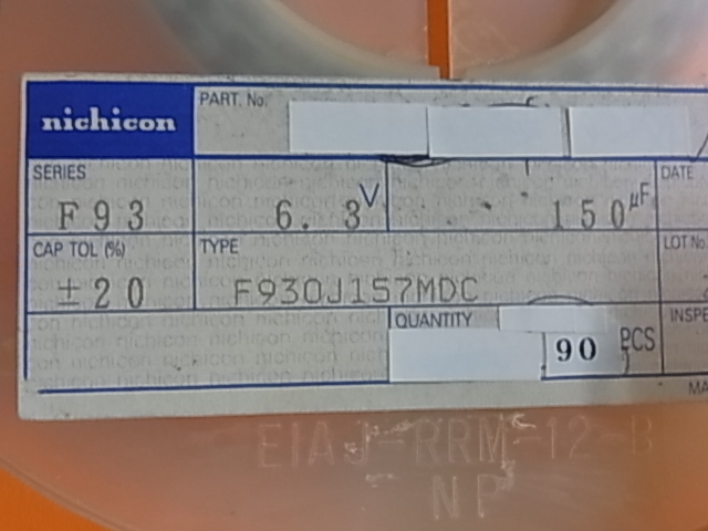 ニチコン 3216型チップタンタルコンデンサ- 6.3V/150μF  F930J157MDC 25個 -BOX5前半/在庫80個