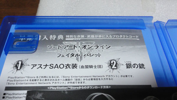 PS4用ソフト ソードアート・オンライン フェイタル・バレット です。