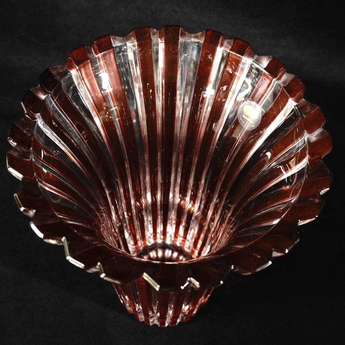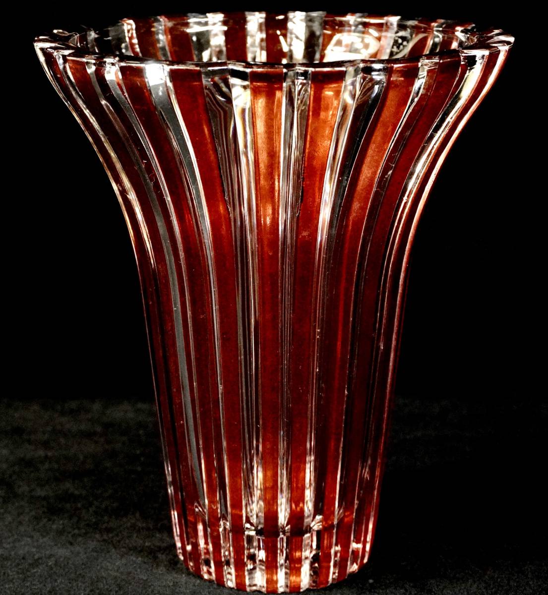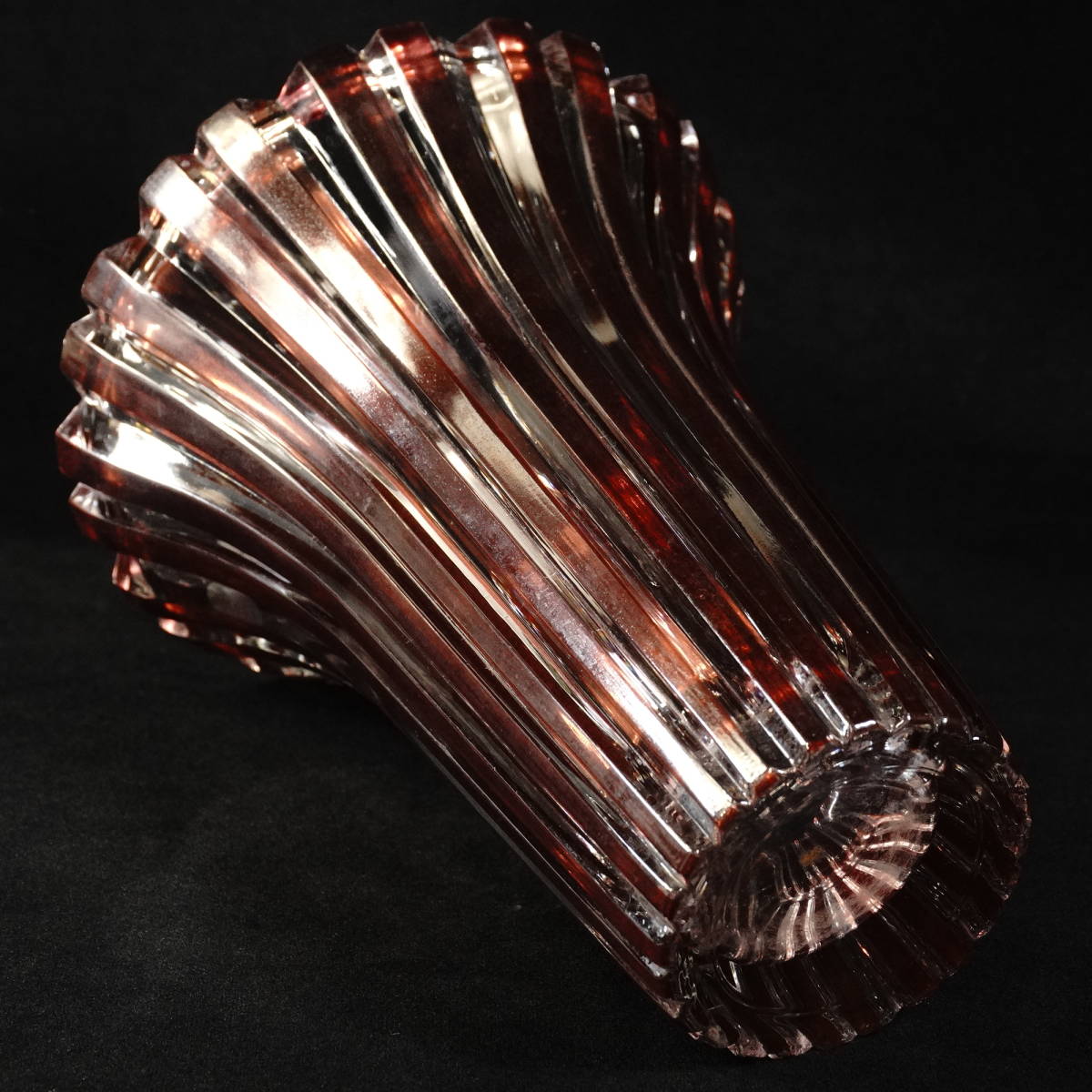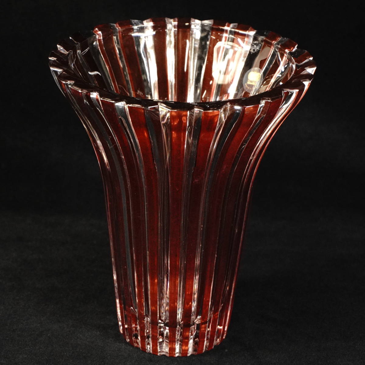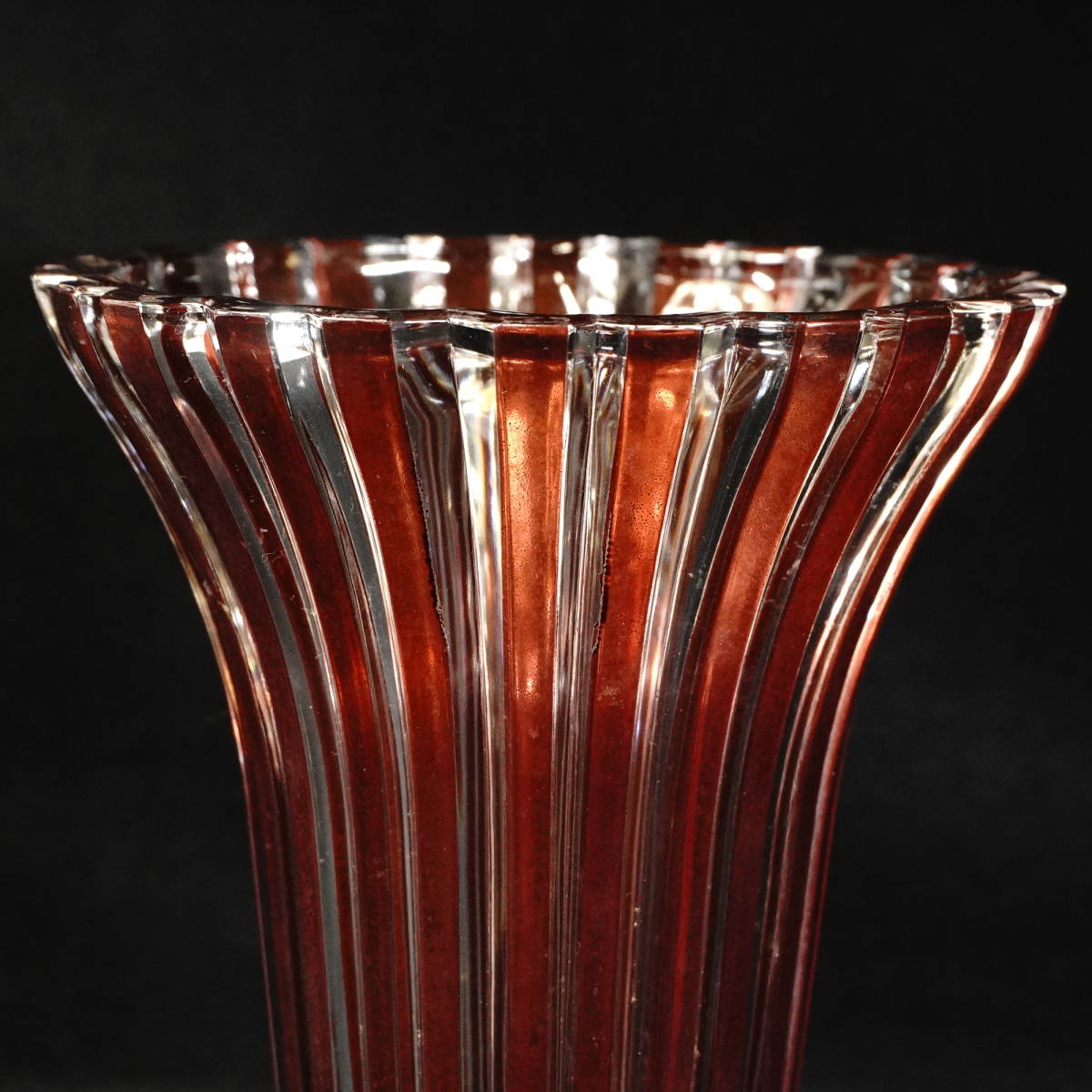 昭和レトロ 曽我ガラス RICCARDO 色被せ花瓶 クランベリーライン 直径17㎝ 高さ20㎝ ビンテージ感のある佇まいが素敵です! IKT411