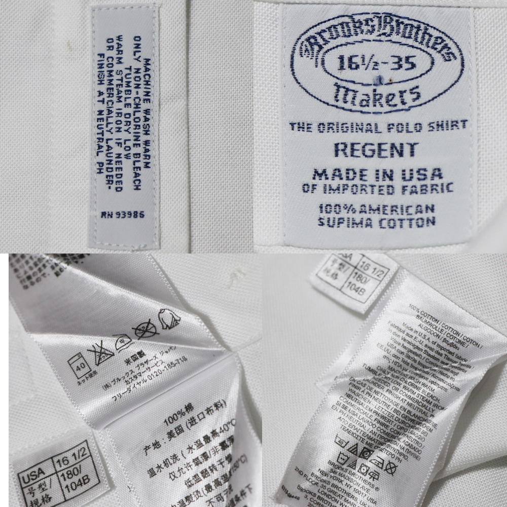 アメリカ購入品 美品 BROOKS BROTHERS ブルックスブラザーズ MADE IN USA ボタンダウンシャツ 白 L 16 1/2-35サイズです。
