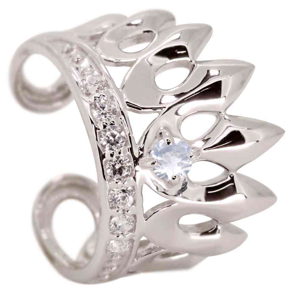 6月誕生石ロイヤルブルームーンストーンを使用したプラチナ製の、王冠(クラウン)モチーフメンズイヤーカフです。