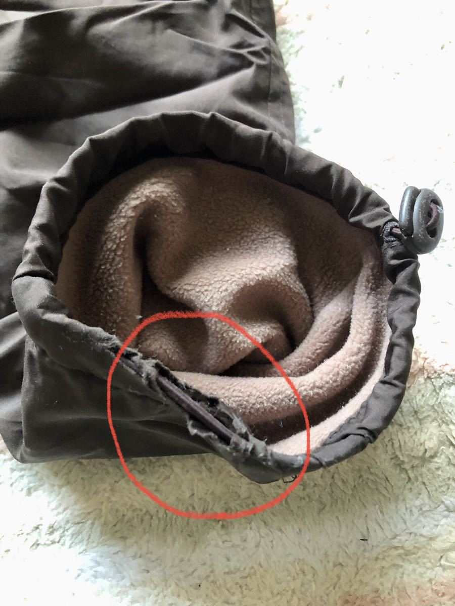 外側はナイロンのような素材で風を通しにくく、内側はフリース素材であったかいです。