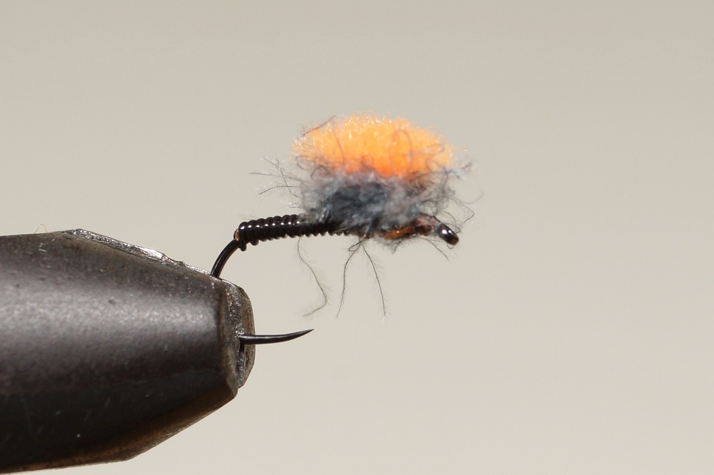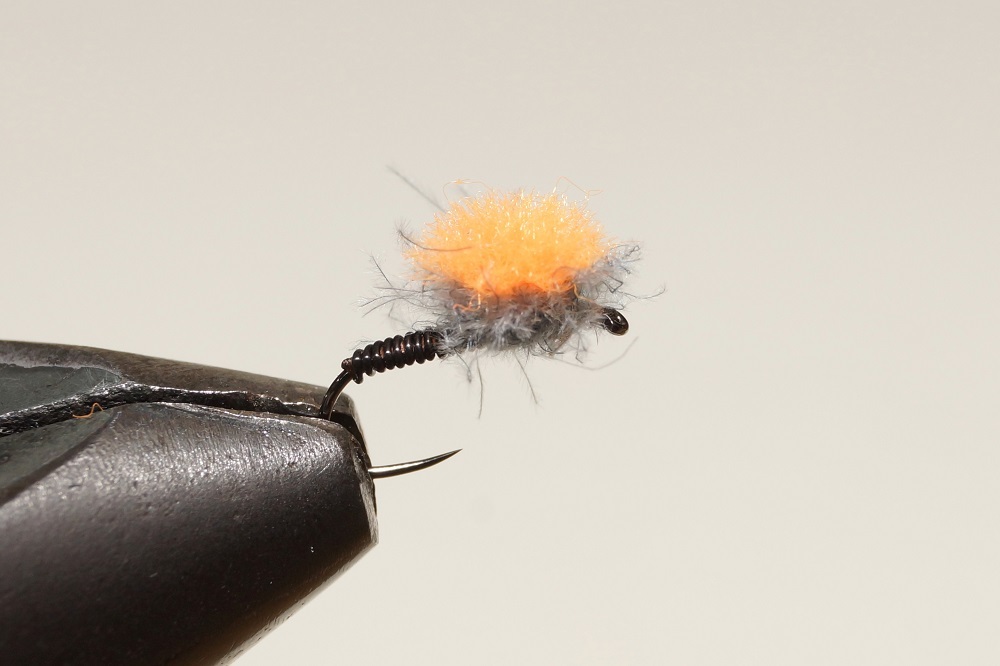 吸水性のない黒のポリプロピレンファイバーをボディーに使い、黒(グレー)に染色したダウンボールをハックルしたフローティングピューパです。ポストは大き目で視認性が良く、水面下からはダウンでポストが隠れるので、理に適った使い易いフライです。フックは#16 バーブレスを使用した10本セットです。発送は定形外郵便を予定して居りますが、破損・紛失等で補償されませんのでご了承ください。