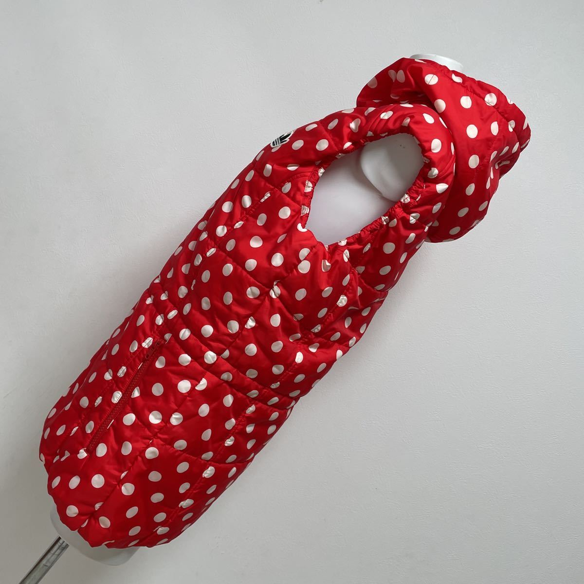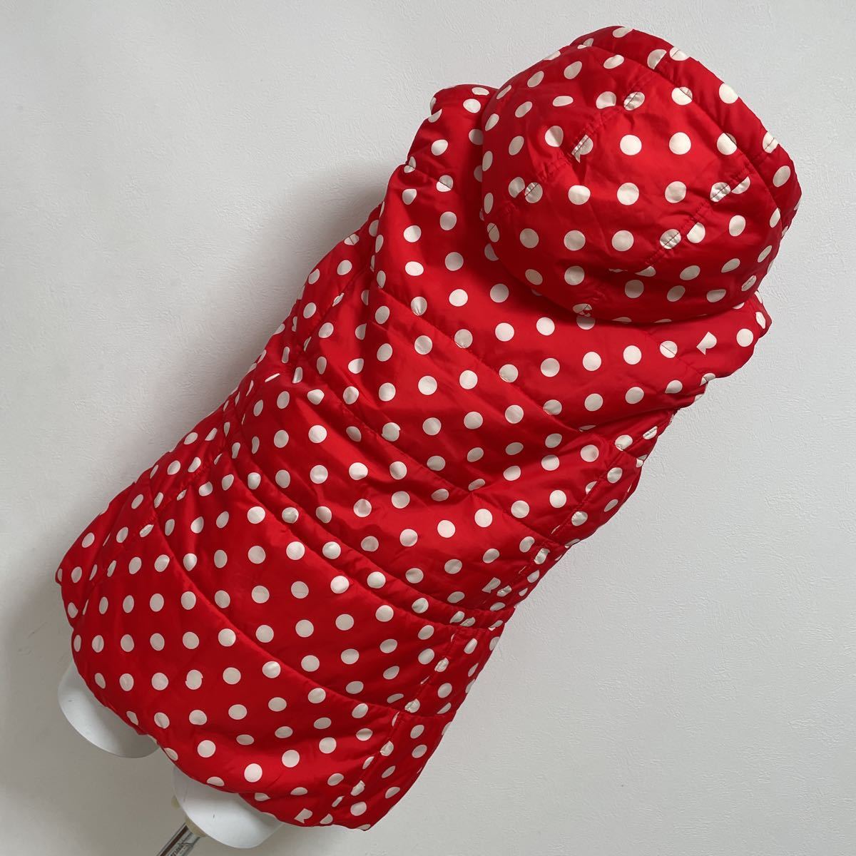 定番アイテムのダウンベストにトレンドを取り入れました。お尻が隠れるように着丈を長くし、トレンドのドット柄を採用。