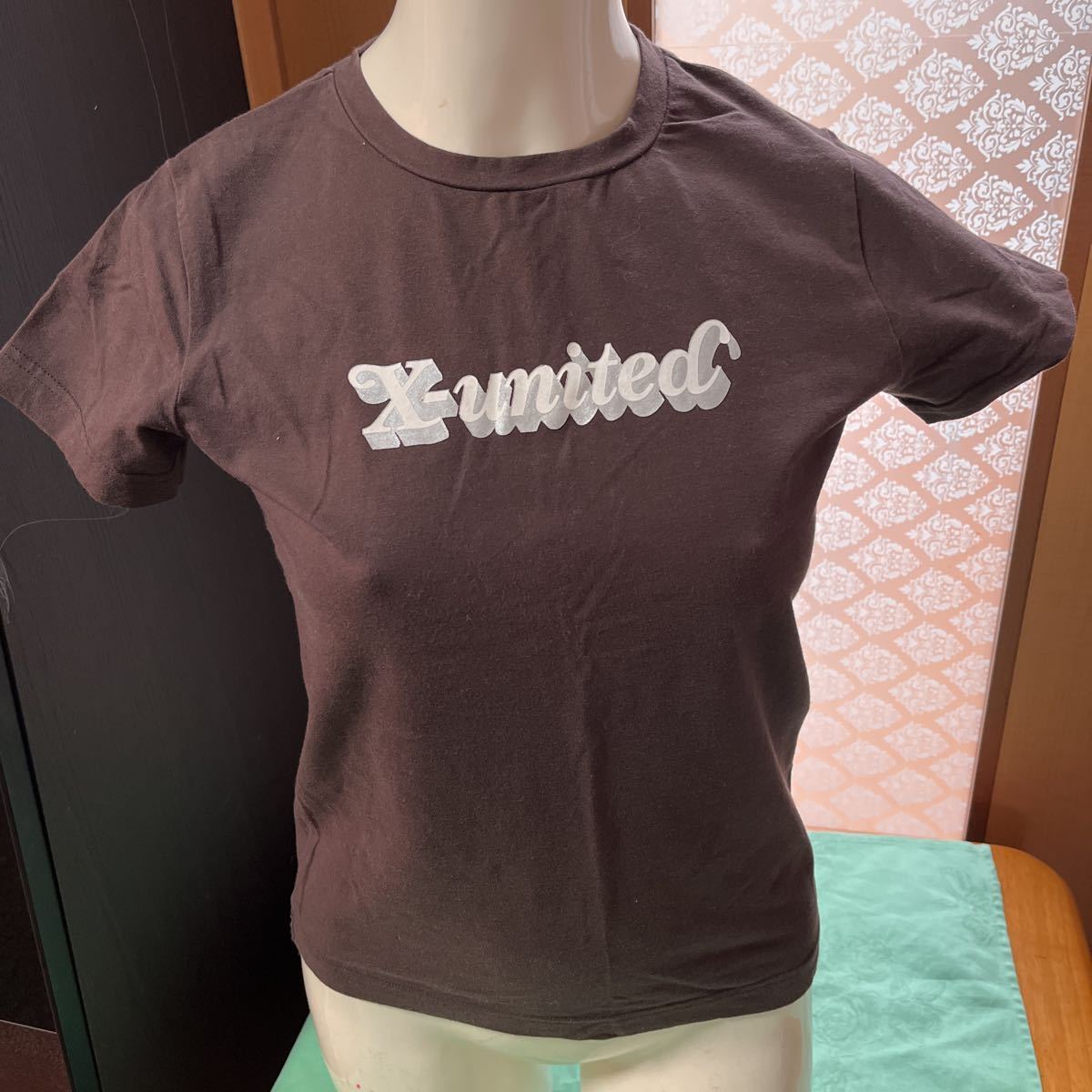 ○ X-united 半袖TシャツS 茶色 ストレッチ トップス レディース