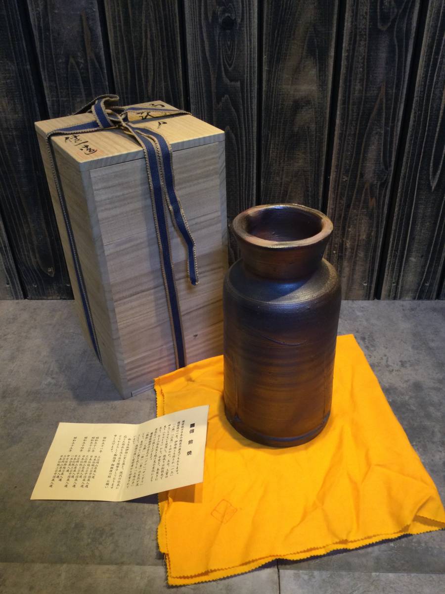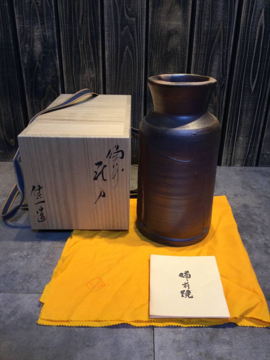 未使用 備前焼 奥本健一 花瓶 花生け 花入 花器 華道 茶道具 茶道 茶の湯 フラワーベース 共箱付
