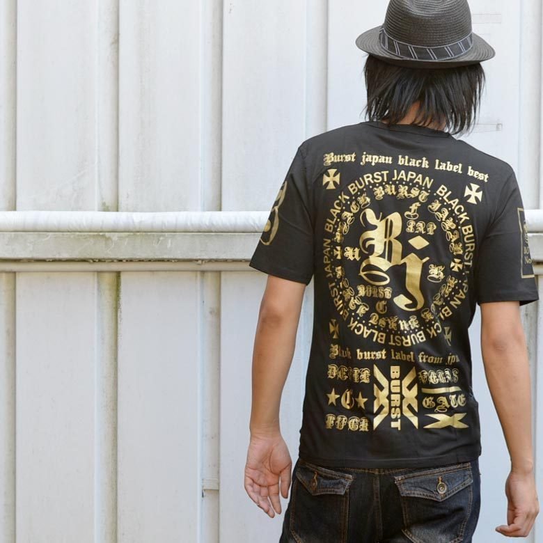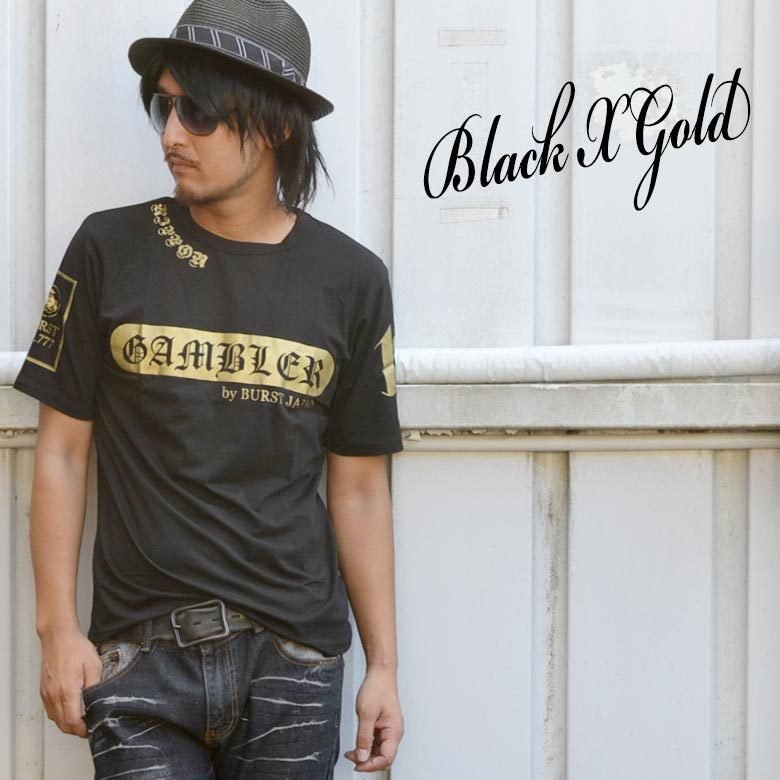 Tシャツ 半袖 メンズ 半袖Tシャツ 半袖Tシャツ オラオラ 悪羅悪羅 カジュアル きれいめ ロック 70536 ブラック×ゴールド L