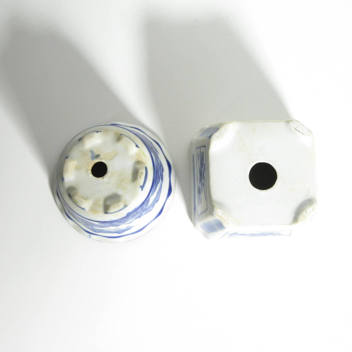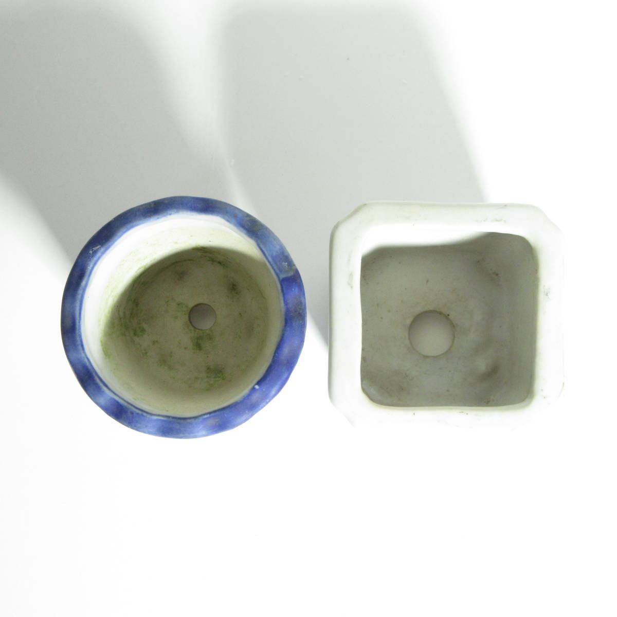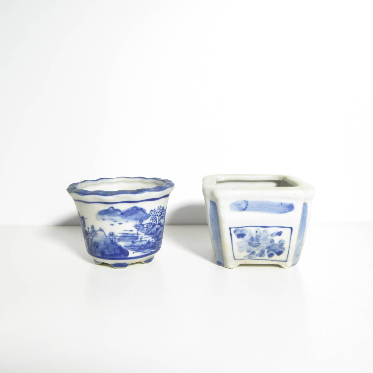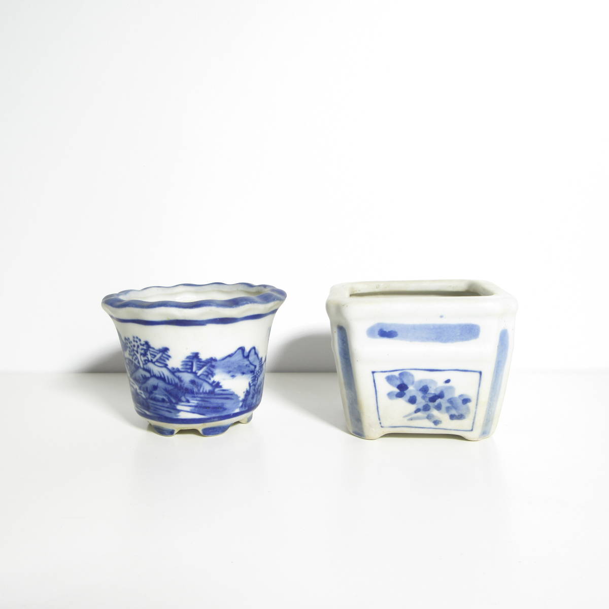 【 盆栽用品・鉢 】『 絵付 盆栽鉢 2鉢セット 』 / 盆栽鉢 山野草鉢 植木鉢 丸鉢 角鉢 絵付鉢 染付 磁器鉢 / 山野草 盆栽 などに!