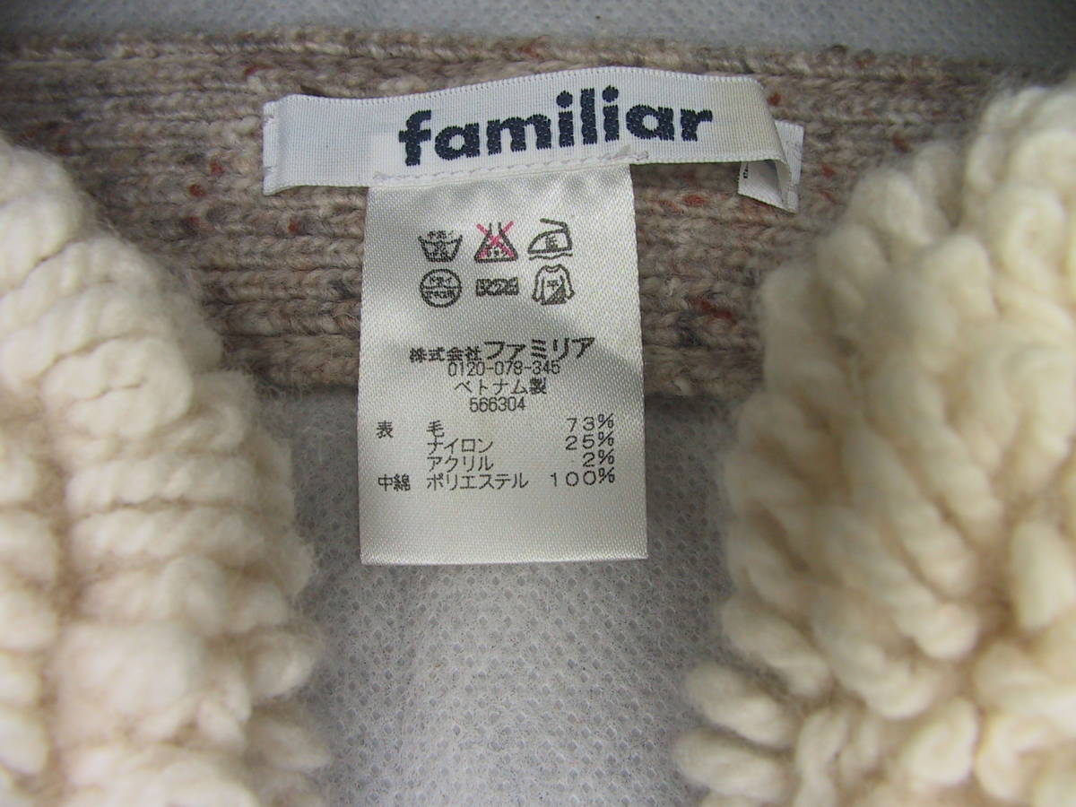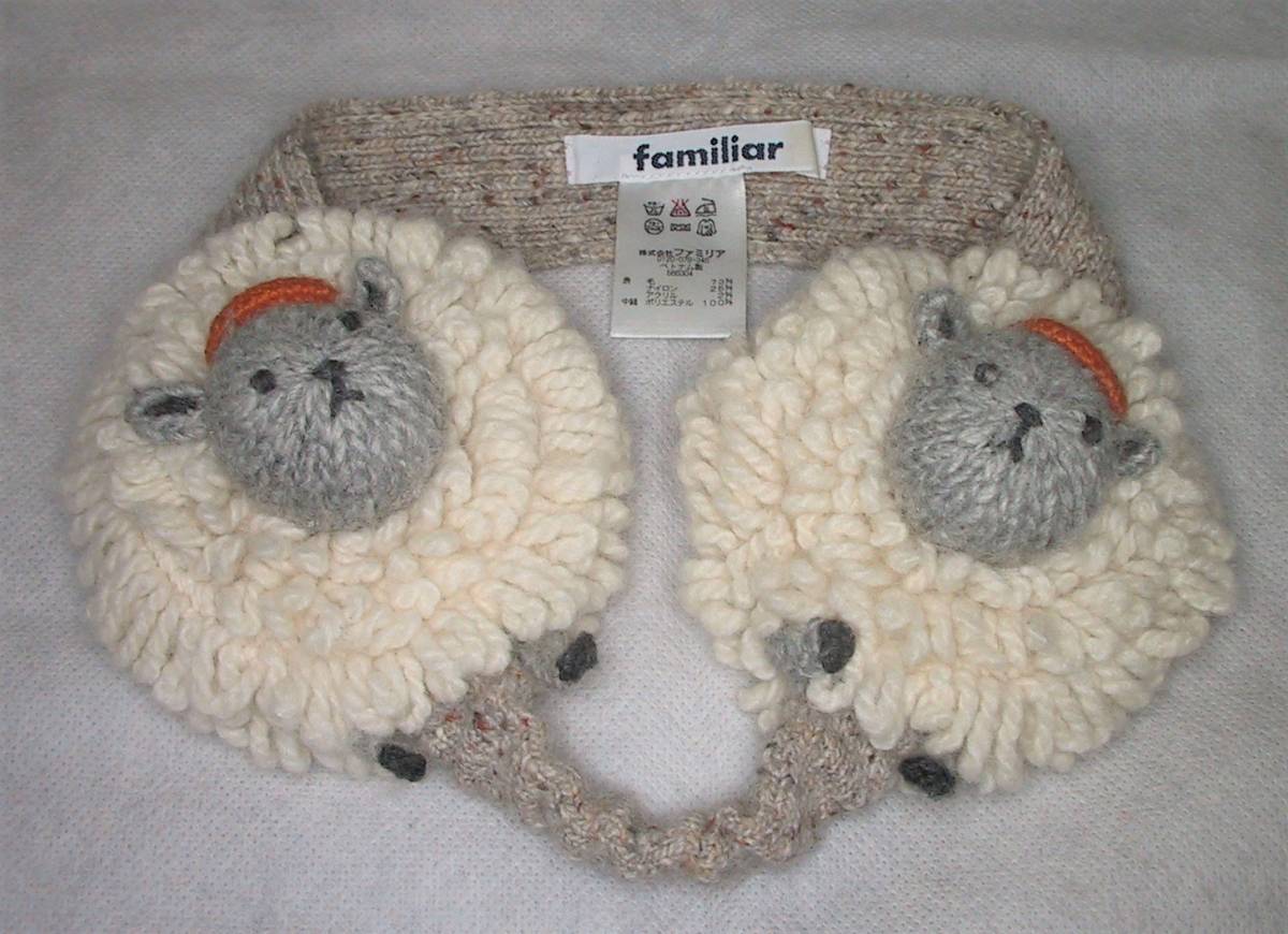 ファミリア familia のクマちゃん 立体刺繍いり/編みぐるみ付き イヤーマフ 耳当てです。数回使用の綺麗なお品です。素材:表ウール73%、ナイロン25%、アクリル2%、中綿ポリエステル100%。サイズ:頭部側のニット24㎝x幅3.5㎝、あご側のニット8~16㎝x幅2㎝。送料は定形外290円、ゆうパック1150円(北海道1740円、沖縄1450円)、レターパックプラス600円になります。