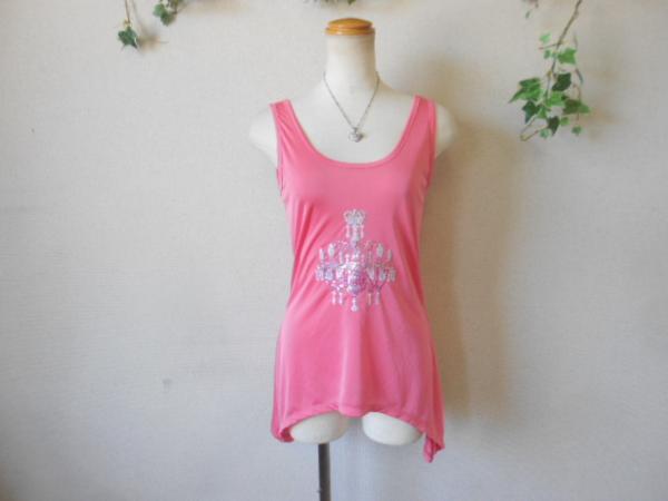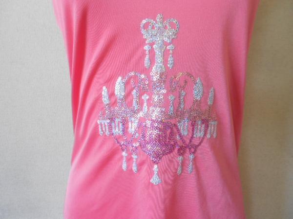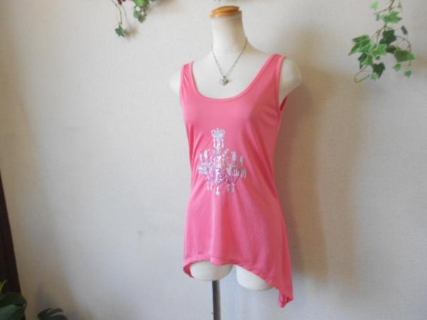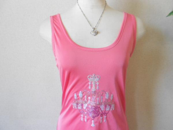 【ポイント】レディのノースリーブカットソーになります。お色はピンクで、スパンコールでシャンデリアの形がとても可愛い一着です。