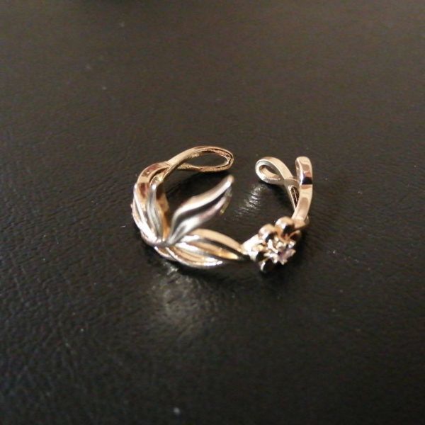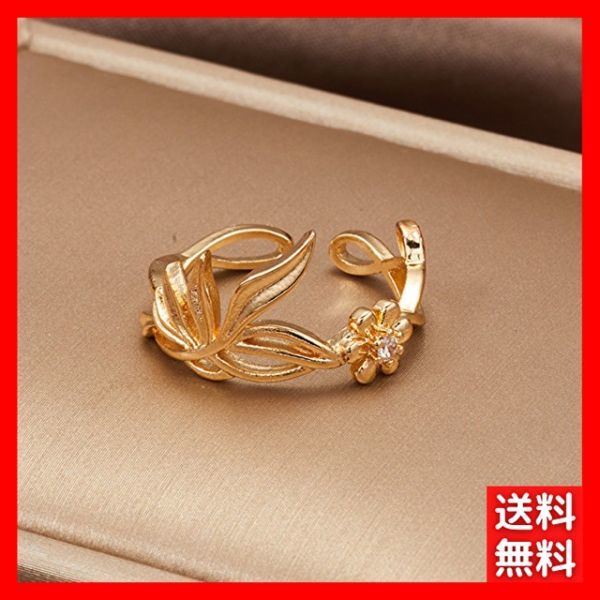 オープンリング 指輪 ゴールド 葉 リーフ レディース 韓国 調整可能 ラインストーン キラキラ 綺麗 ヴィンテージ 女性 エレガント #C928-2