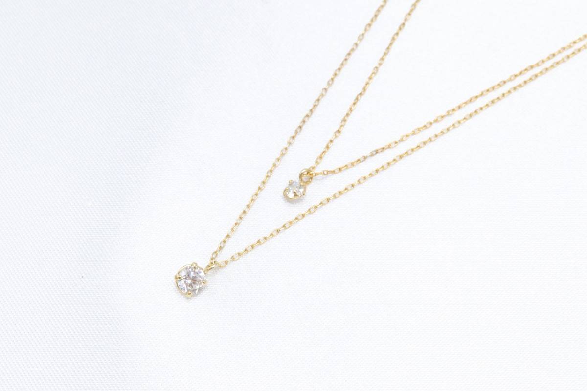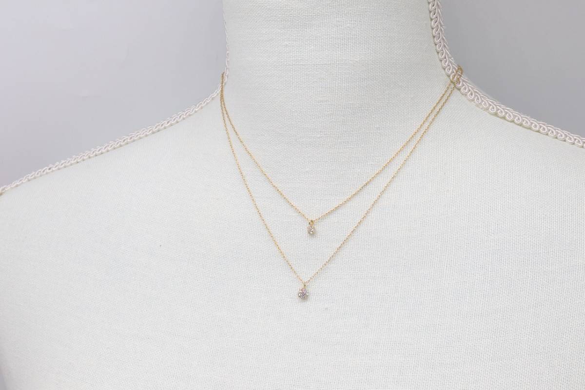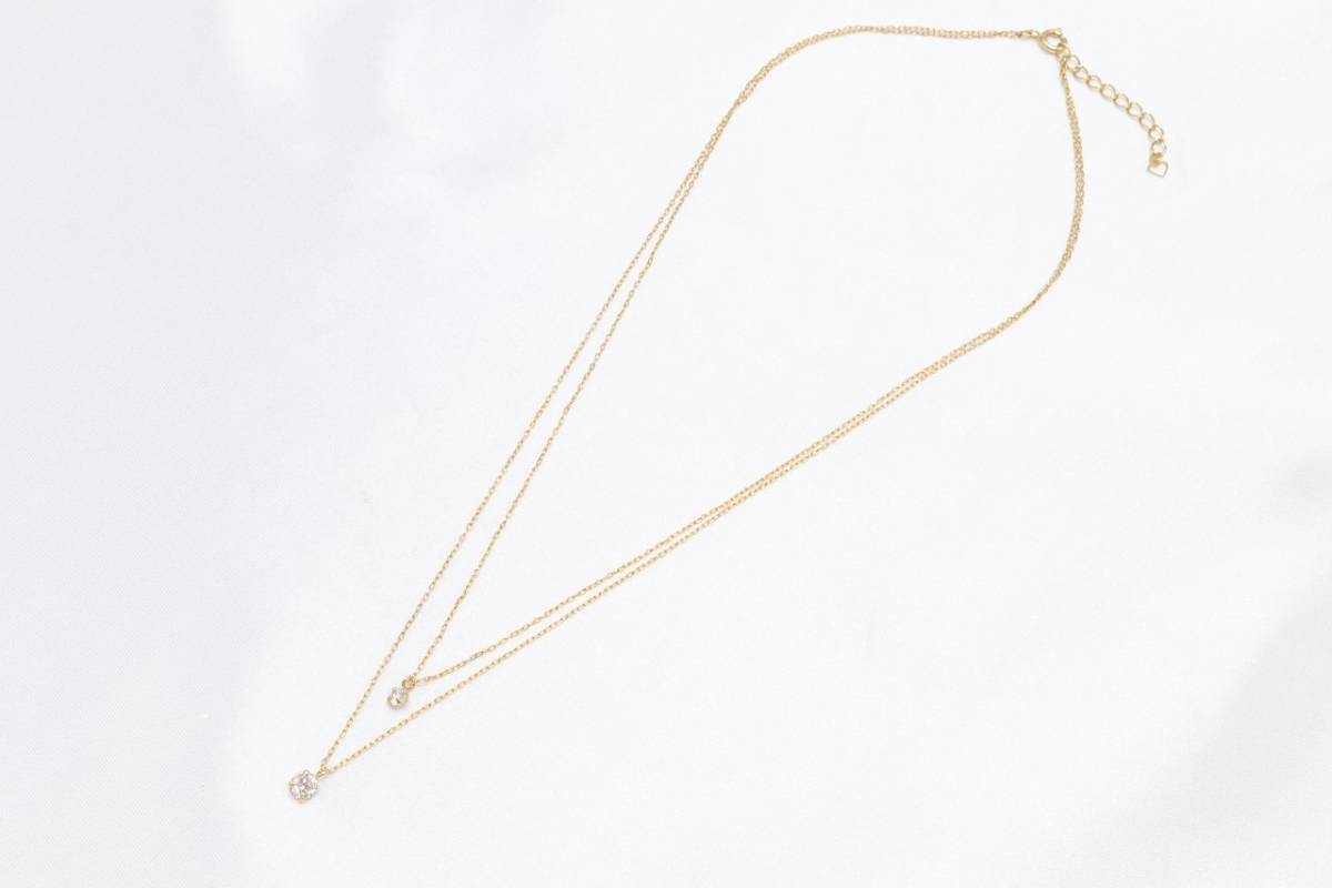 【RA972】キュービックジルコニア ビジュー 2連 ネックレス ゴールドカラー 華奢 未使用保管品【送料全国一律198円】