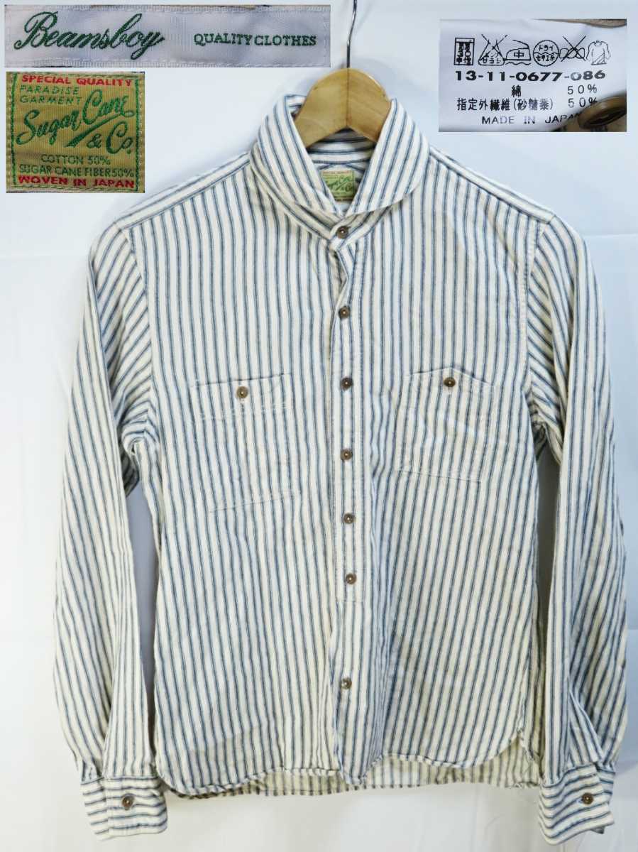 砂糖黍混合(50%)★BEAMSBOYSビームスボーイ×SUGARCANEシュガーケーン/長袖シャツ/ガチャポケ/マチ付き/ストライプ/レディース/日本製/★