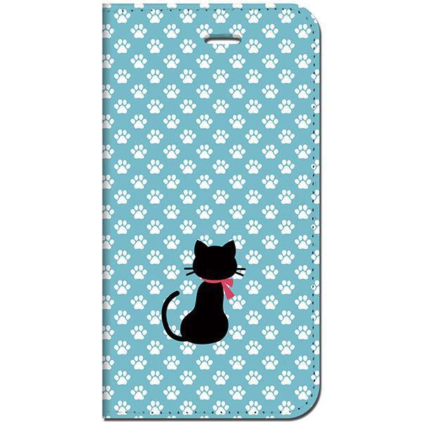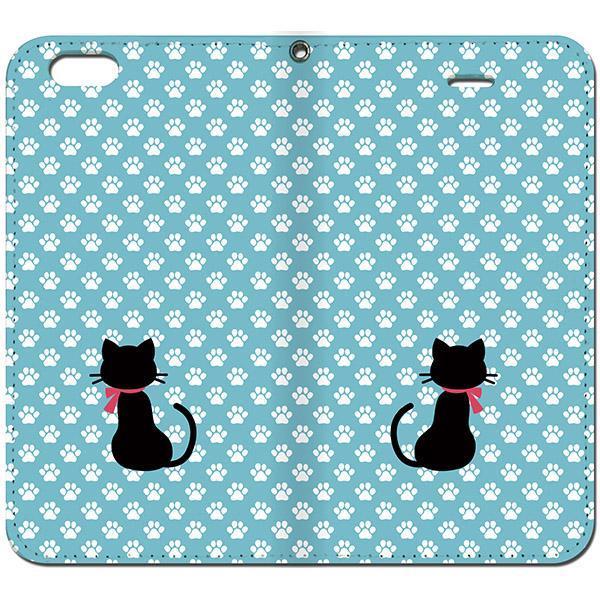 iPhone7 手帳型ケース【猫の足跡-ブルー】