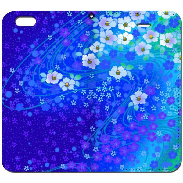 iPhone7 手帳型ケース【和柄-流水花椿】