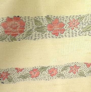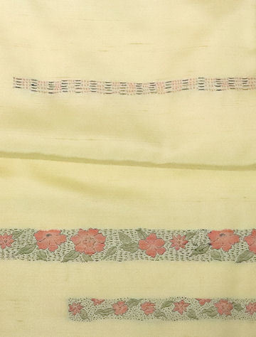 | 色・柄 | 手織り紬 袷 黄色地花横縞織 上品な紬です。 (写真では上手く色が出ない場合があります。ご了承下さい) 実際の地色は3枚目の地柄の写真を参照してください。 |