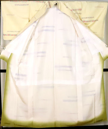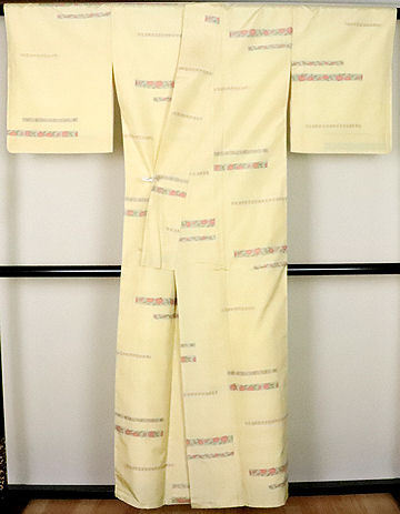 | 手織り紬 袷 黄色地花横縞織 162 広襟 新品 仕付け付き | |