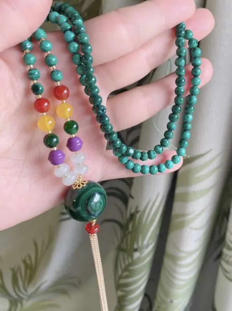 マラカイトアクセサリーを装着することで、孔雀石に含まれる自然エネルギーを吸収し、外界の放射を吸収することで、皮膚への刺激を減らすことができる。