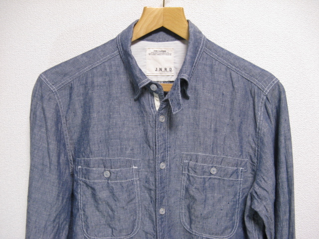 J.N.R.D. ジュンメンのリネン100% チンスト 長袖 シャンブレーシャツです。状態良いのおすすめです。