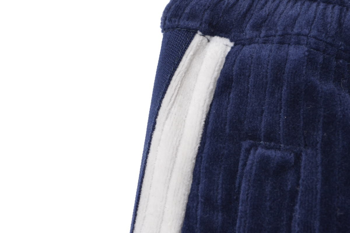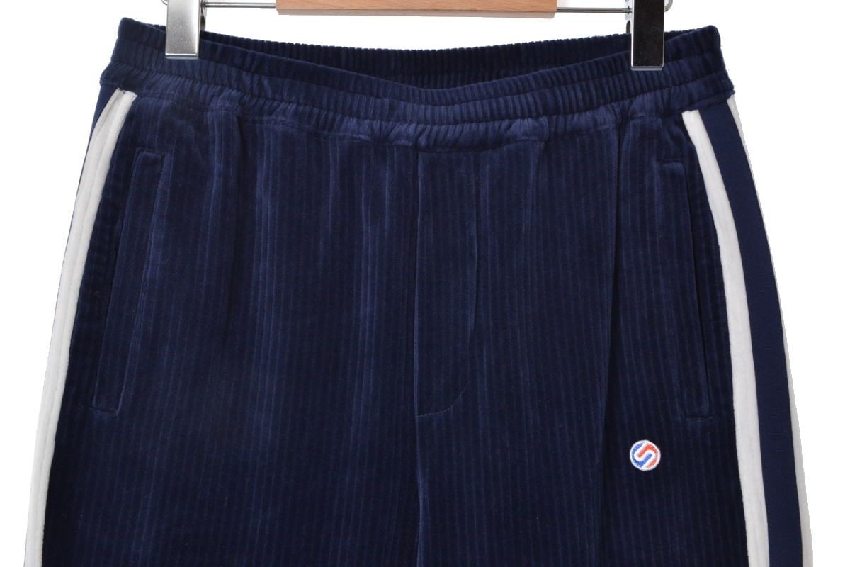 コメント | Mod:10184602・定価¥17.280-/コーデェロイのような畝の入ったベロア生地を使用し、サイドラインをあしらったトラックパンツです。 |