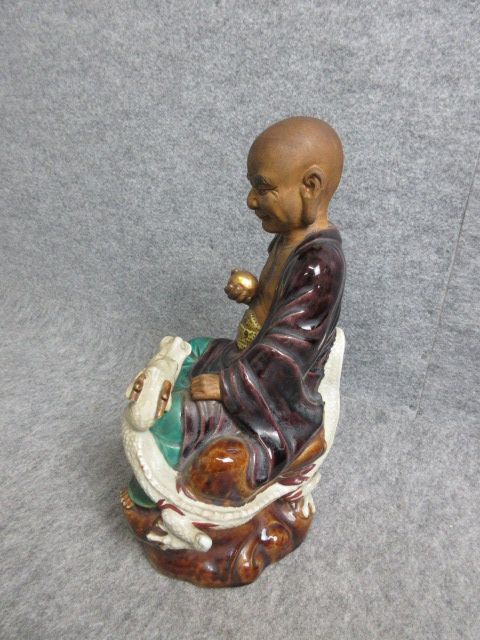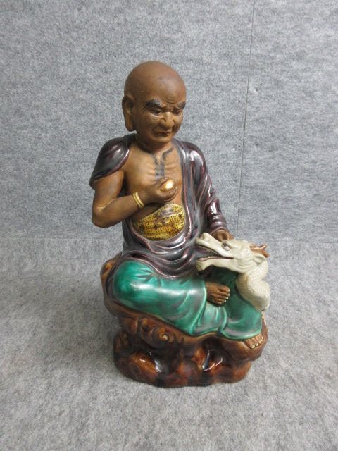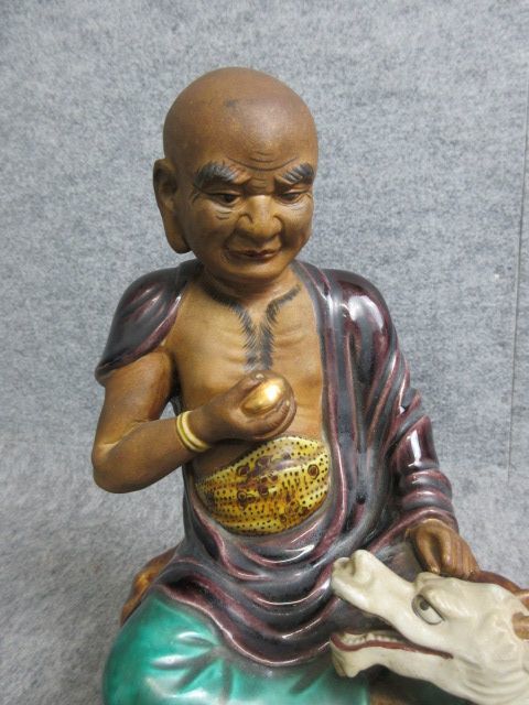 【政】30709 九谷焼仏像置物 九谷晴峰 床置 骨董 古物