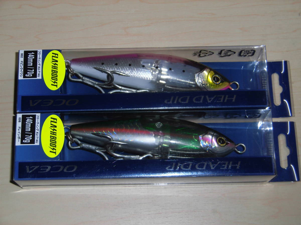 シマノのオシア ヘッドディップ 140F フラッシュブースト 70g 002 Fピンクイワシ・006 Fレインボー 2本セットです。