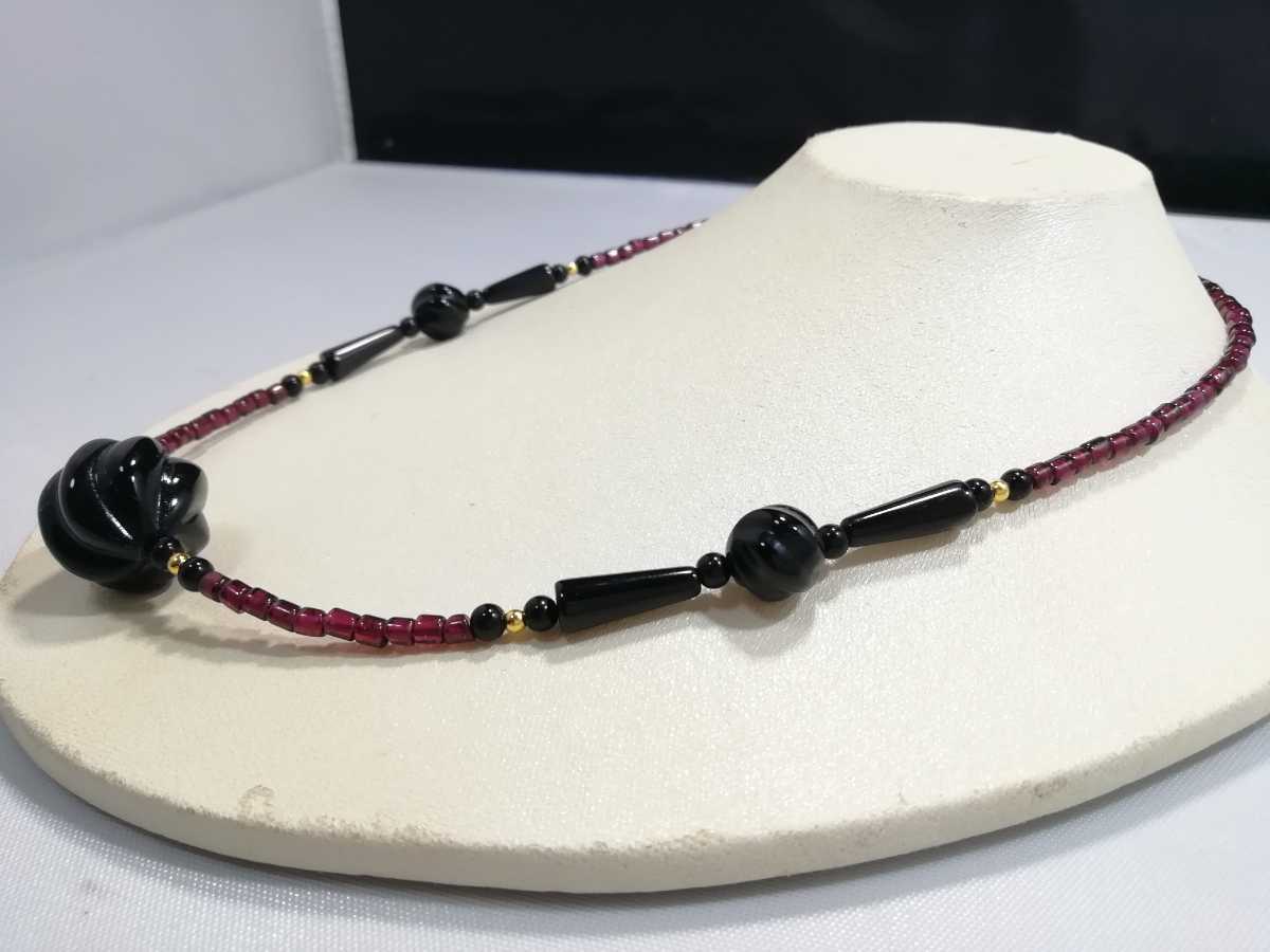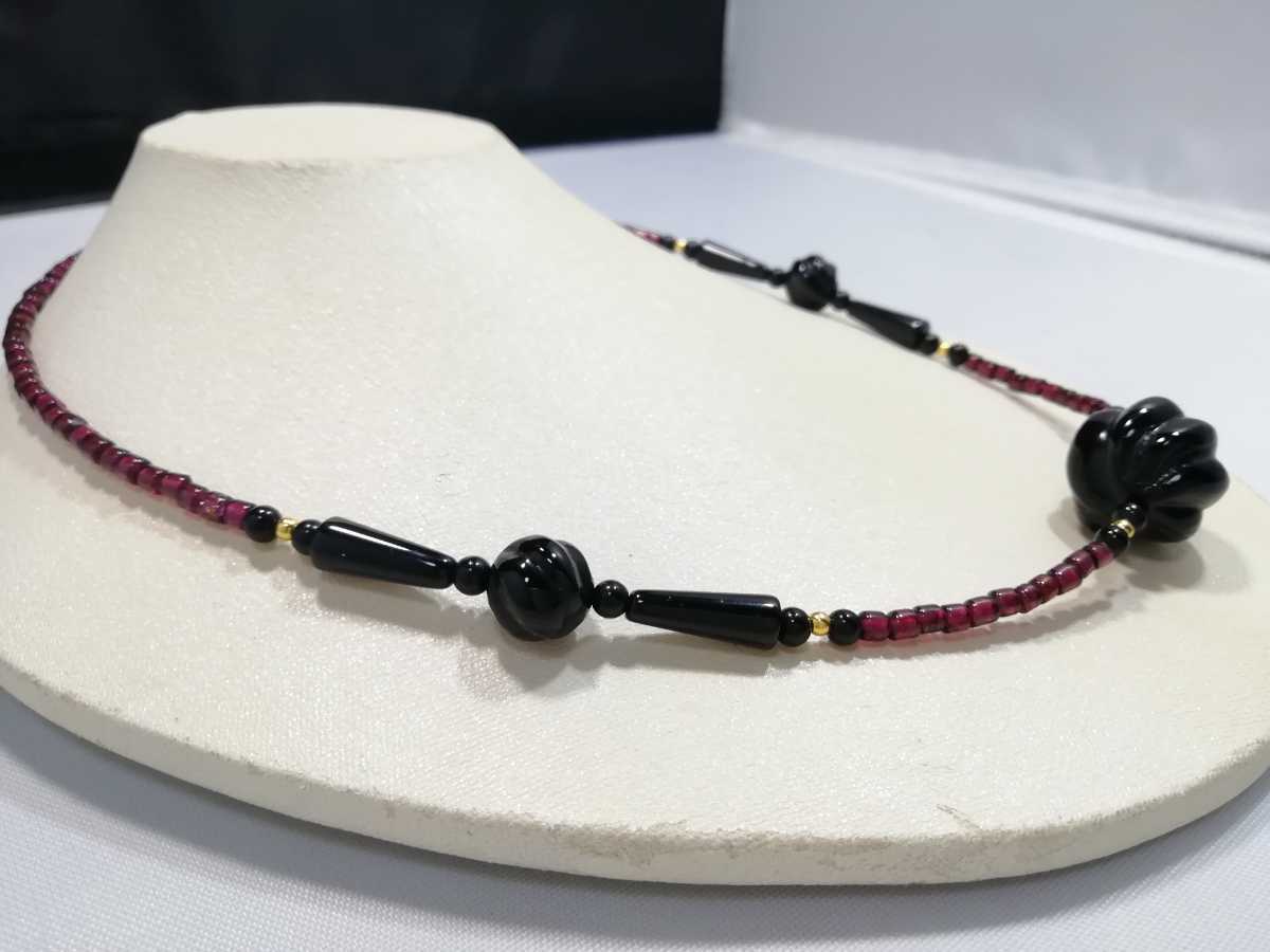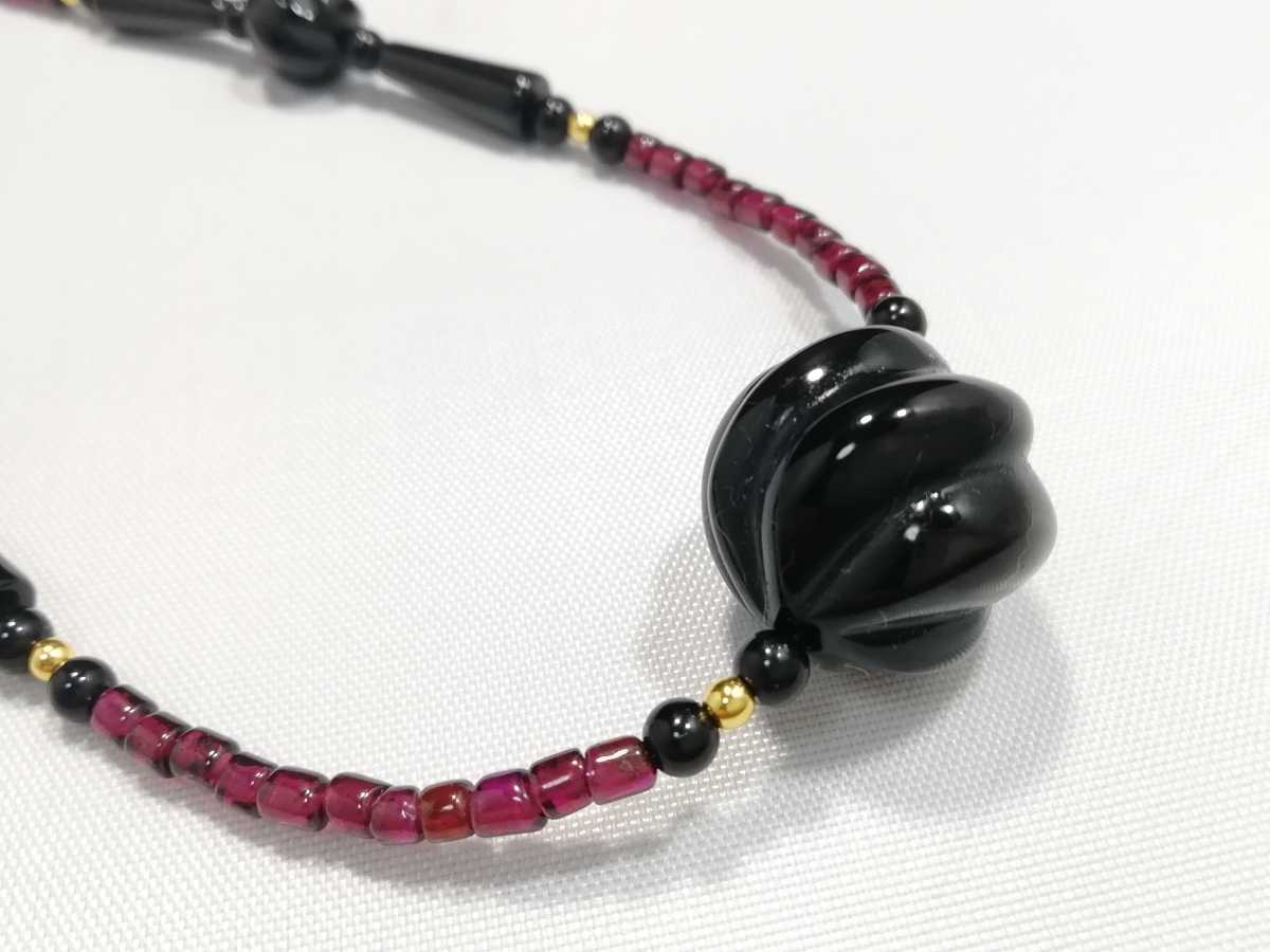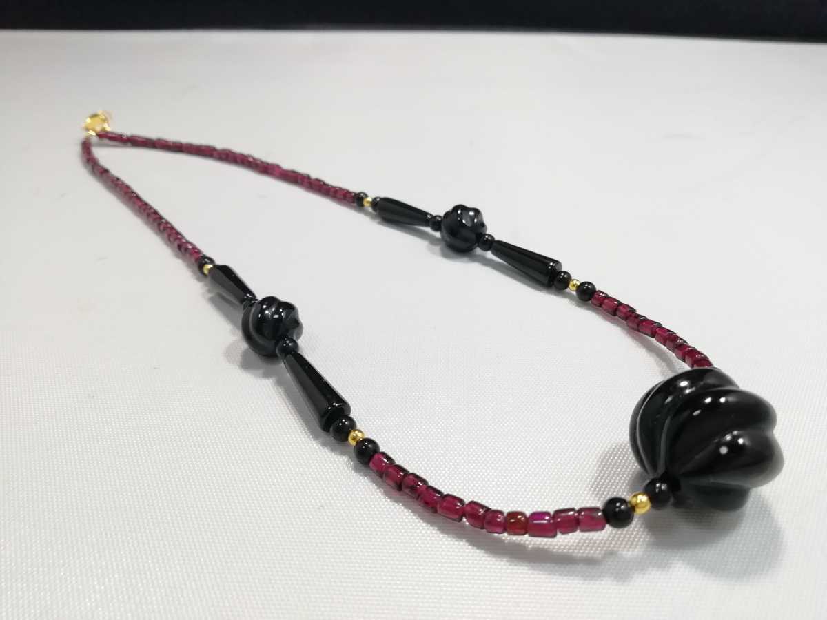 天然ファンシーカットガーネット&ファンシーオニキスコンビネックレス
