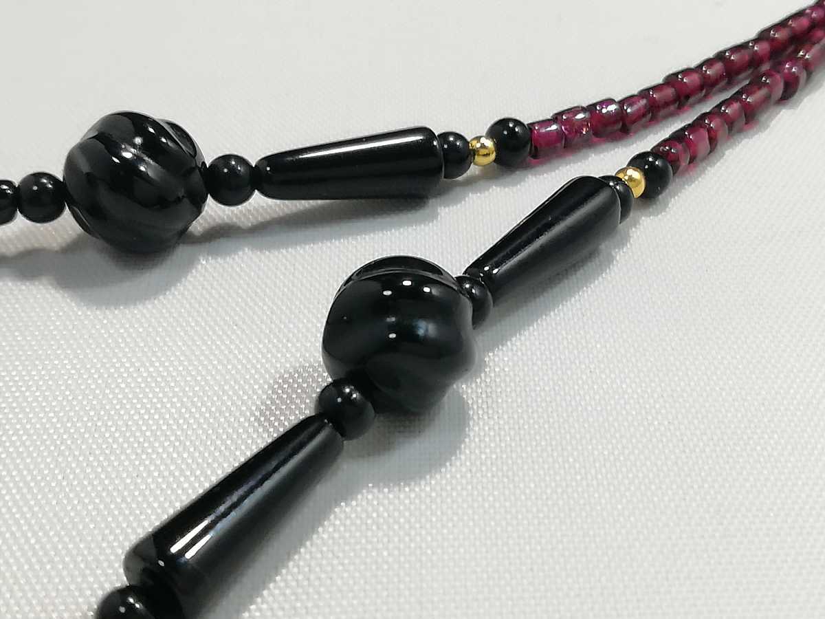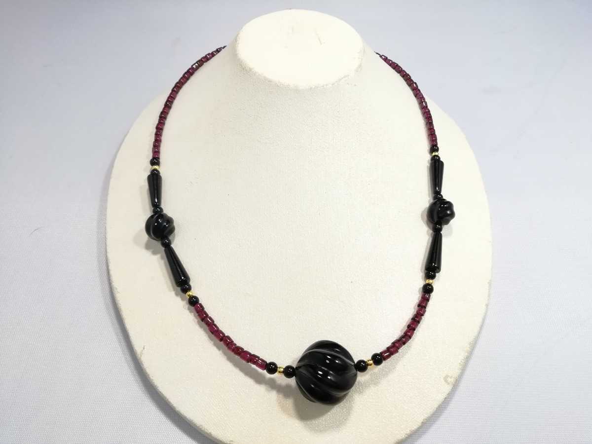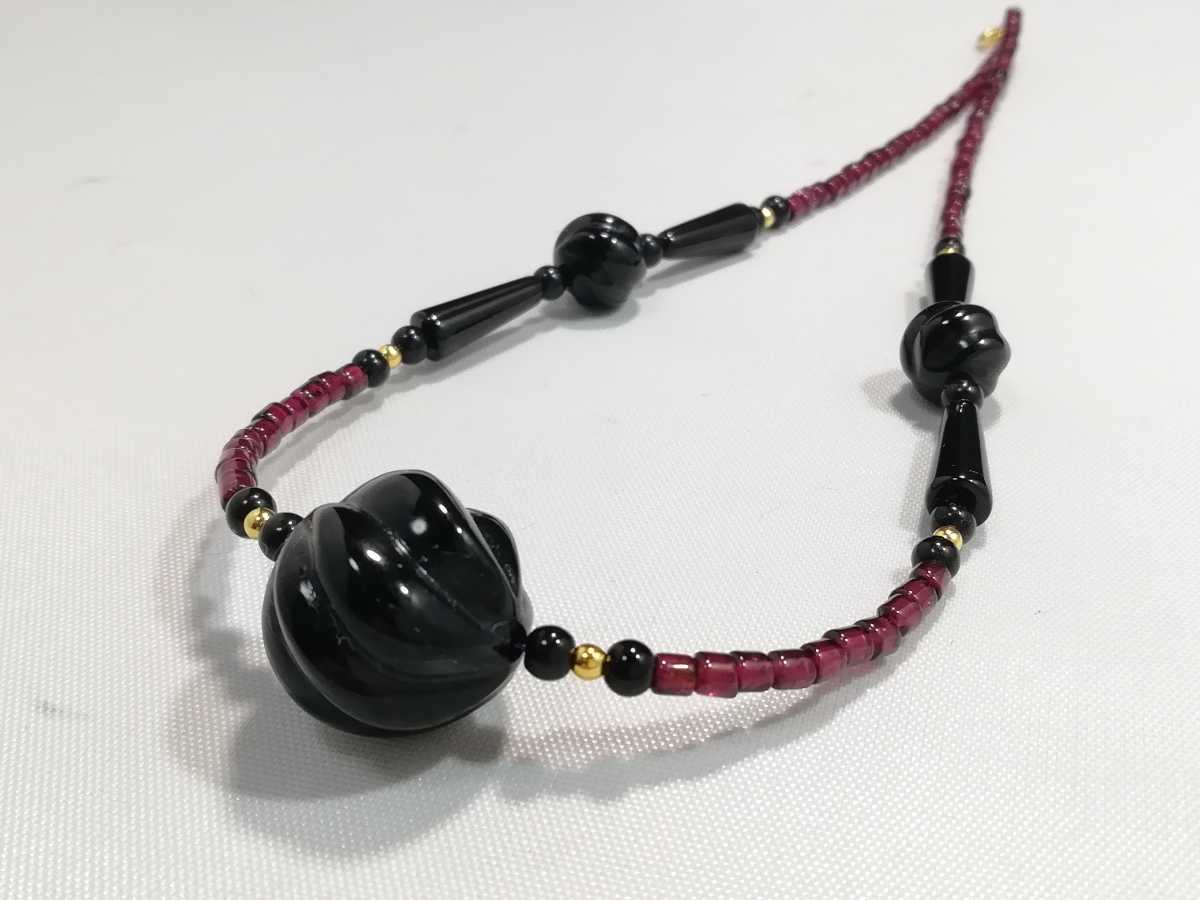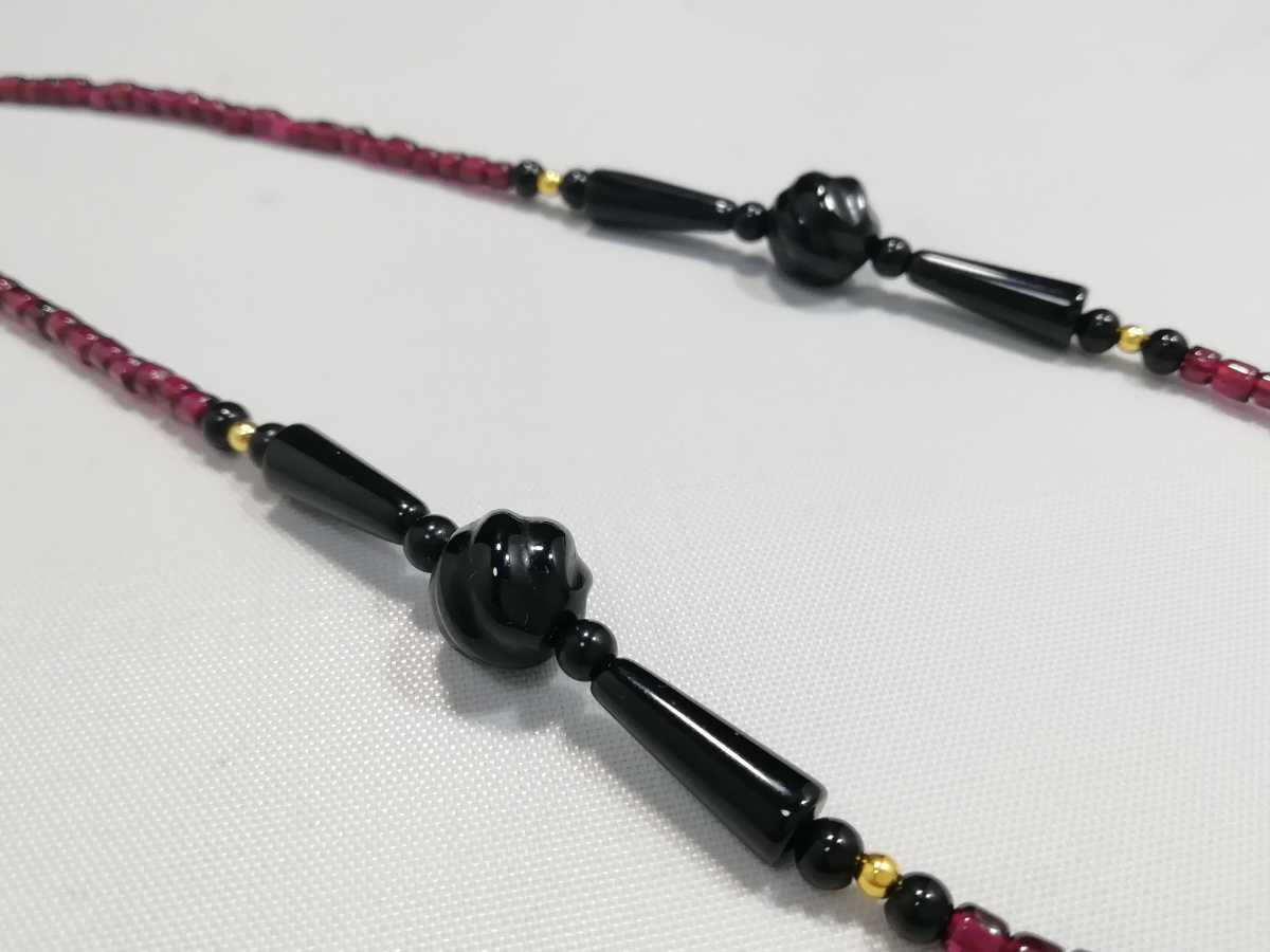 天然ファンシーカットガーネット&ファンシーオニキスコンビネックレス
