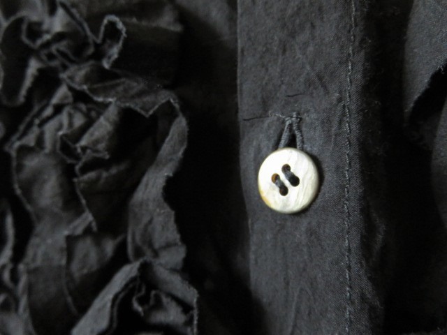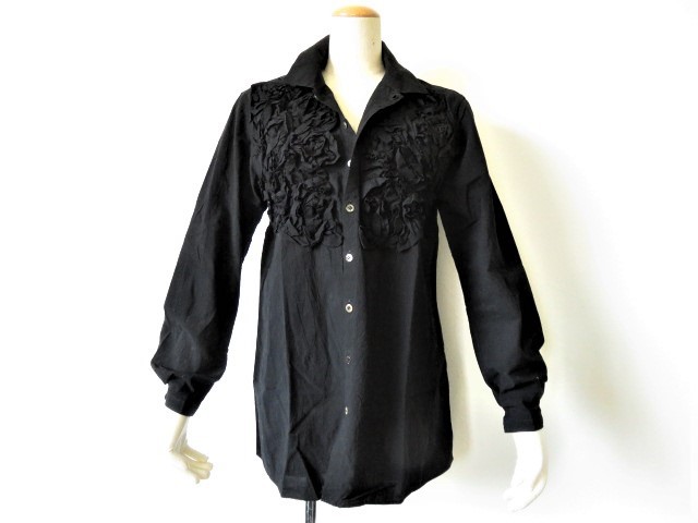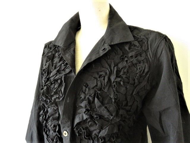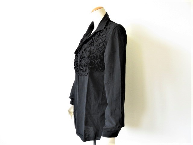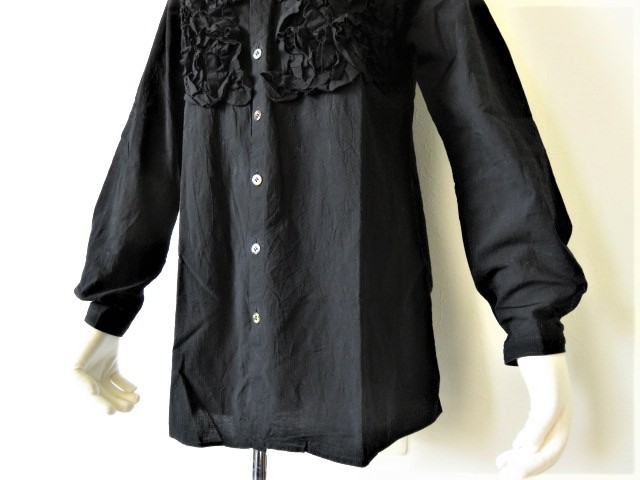 【 HAI COLLECTION HISA MATSUSHIMA 】 の高級ストレッチフリルシャツ、お色は黒です。