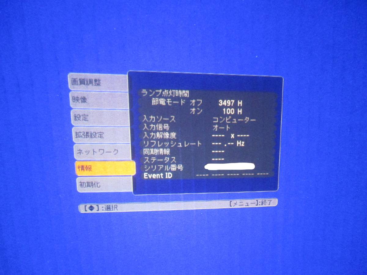 [A2-3/E3497]★EPSON プロジェクター EB-1761W ランプ使用時間 節電モードオフ:3497H オン:100H★