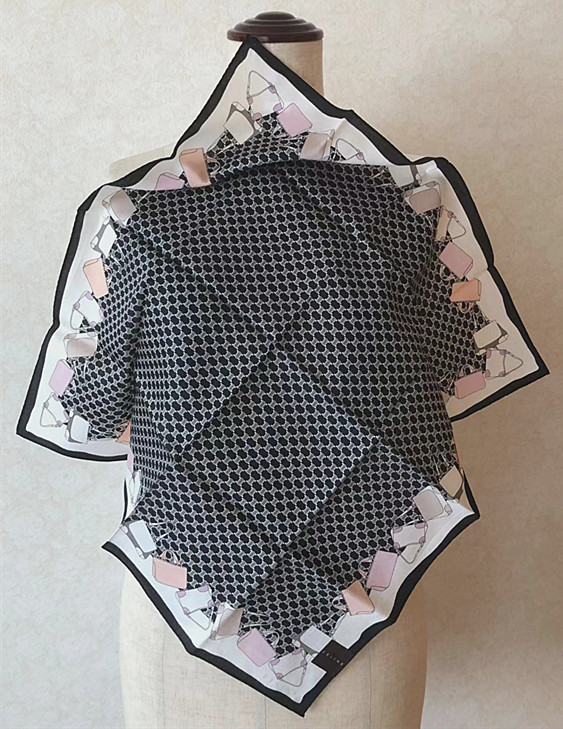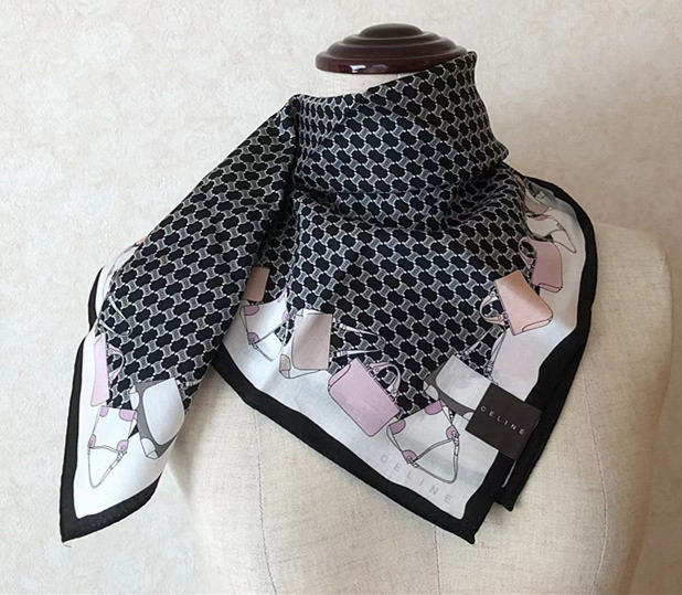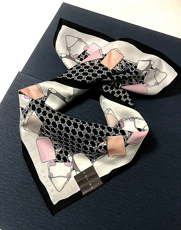新品CELINE セリーヌ★ビンテージレア柄大人気マカダム&バッグ柄ハンカチミニスカーフ◆膝掛け②