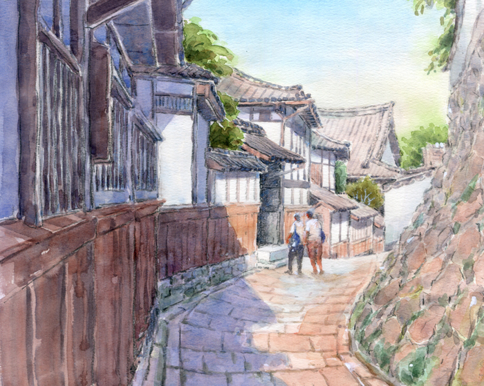 ★水彩画★原画「武家屋敷 臼杵市」#499
